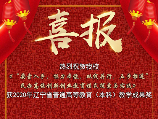 早在2015年,我校发明了科学的创新创业教育理念、思路和模式,经过多年来的践行,我校题为《“要素入手,能力本位,双线并行,五步推进”民办高校创新创业教育模式探索与实践》获得2020年辽宁省普通高等教育(本科)教学成果奖,这是我校建校以来在省级教育教学成果奖中获得的最高荣誉。