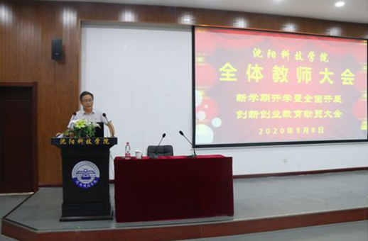 2020年9月8日,我校“新学期全体教师大会—暨全面开展创新创业教育动员大会”在学校报告厅隆重举行,在多年实践成果积累基础上,我校全面推行创新创业教育及其实践探索研究工作。会上,王喜魁副校长从“为什么要全面推行创新创业教育”和“怎样全面推行创新创业教育”两个方面进行全面动员、精心部署。“全面推行创新创业教育”,这是我校继“砥砺奋进第一个5年”在创新创业教育取得丰硕成果之后,再次抓住学校历史发展新机遇,以全新的教学模式和教育教学发展方向,开创更大更高层次的发展空间,把我校创新创业教育推向新的高潮。