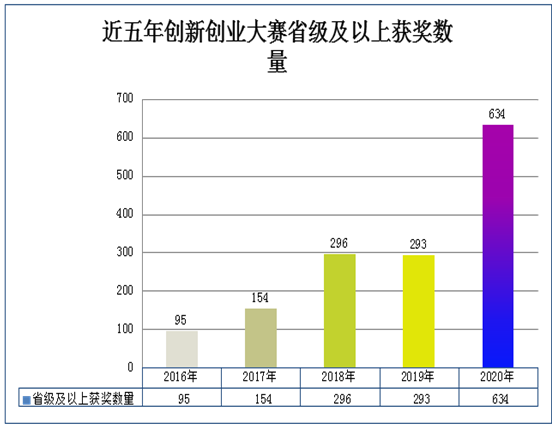 路遥知马力,日久见人心,疫情大考对创新创业竞赛的组织和参与难度不言而喻,我校师生披襟斩棘,百战不殆,五年累计获得省级以上获奖1472项,其中世界级奖励7项,国家级奖励46项,省级奖励1419项,参与师生高达20000余人次,师生参赛覆盖率更是达到90%。