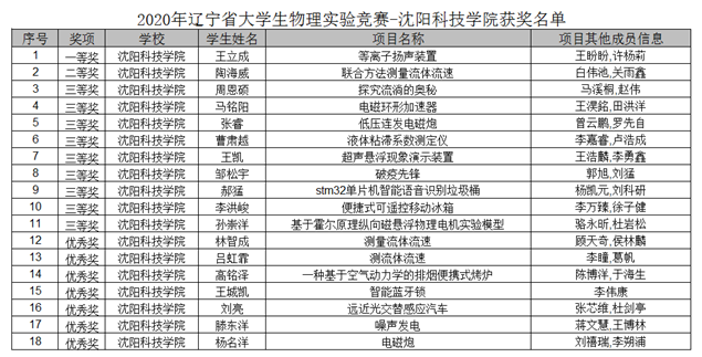 6.在2020年辽宁省大学生物理实验竞赛中,我校喜获18项省级奖励,分别是省级一等奖1项、二等奖1项、三等奖9项、优秀奖7项。