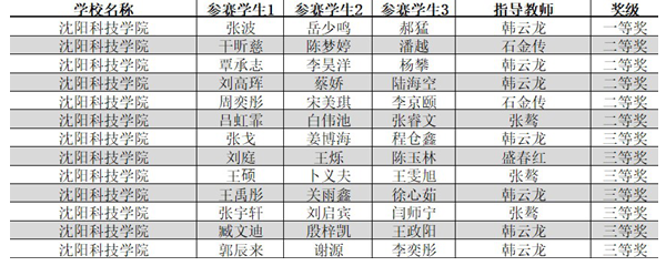 除以上竞赛外,我校在辽宁省首届智能制造科普创意创新大赛、2020年辽宁省大学生食品创新大赛、辽宁省2020年iCAN国际创新创业大赛、2020年辽宁省大学生英语挑战赛、2020年辽宁省“学创杯”大学生创业综合模拟大赛、2020年辽宁省大学生集成电路创新创业大赛、2020年辽宁省大学生计算机系统与程序设计竞赛、2020年辽宁省大学生绿色染整科技创新大赛、辽宁省大学生数字贸易创新创业大赛、2020年辽宁省大学生创业企业经营模拟沙盘大赛、2020年辽宁省企业价值创造大赛等省级创新创业大赛中均获得佳绩。