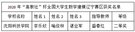 18. 在2020年“高教社”杯全国大学生数学建模中,我校获得省级二等奖1项。