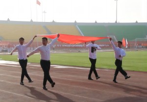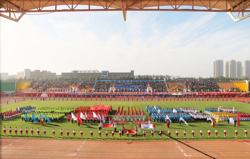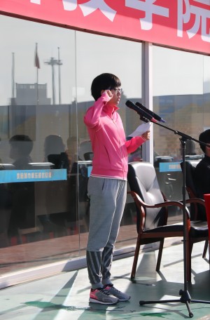 全体师生高唱《义勇军进行曲》后,副校长王喜魁致开幕词。他指出,体育工作是学校教育教学的重要组成部分。多年来,我校始终秉承强化体能、传承技能、和谐发展、终身健康的体育教育宗旨,倡导学生“走出宿舍、走向操场”,校园体育文化建设一派欣欣向荣。他希望全体运动员拼搏进取、奋发勇为;希望全体裁判员恪尽职守、公正裁判;希望全校师生能够通过举办运动会,掀起热爱运动、崇尚健康的热潮,进一步提升我校竞技体育运动水平,推动我校体育事业再上新台阶!随后,运动员代表吴春雪同学和总裁判长梁新鑫老师分别登上主席台宣誓,表达了顽强拼搏和公正评判的决心。