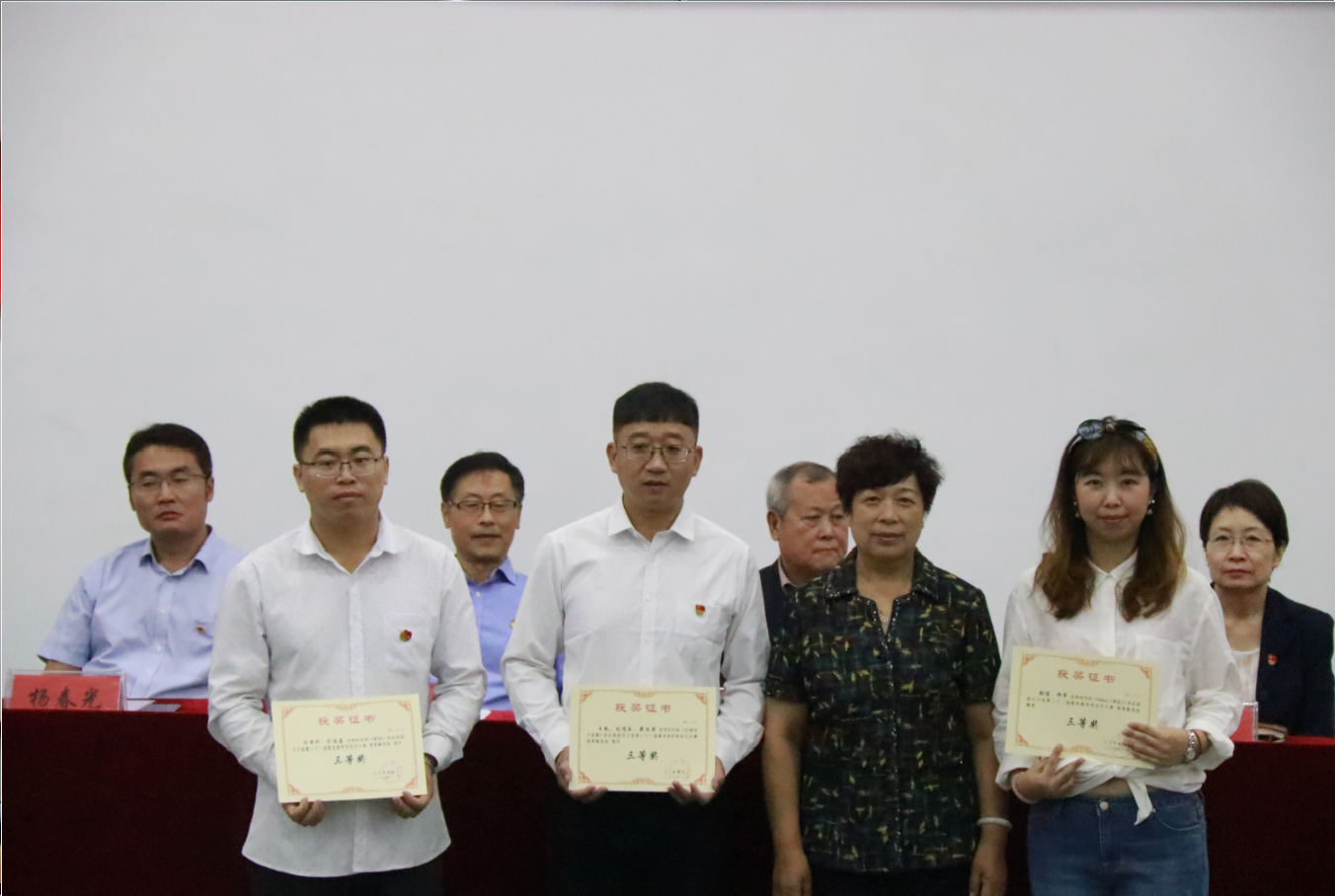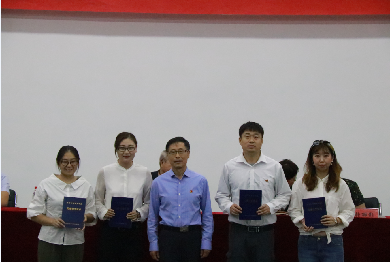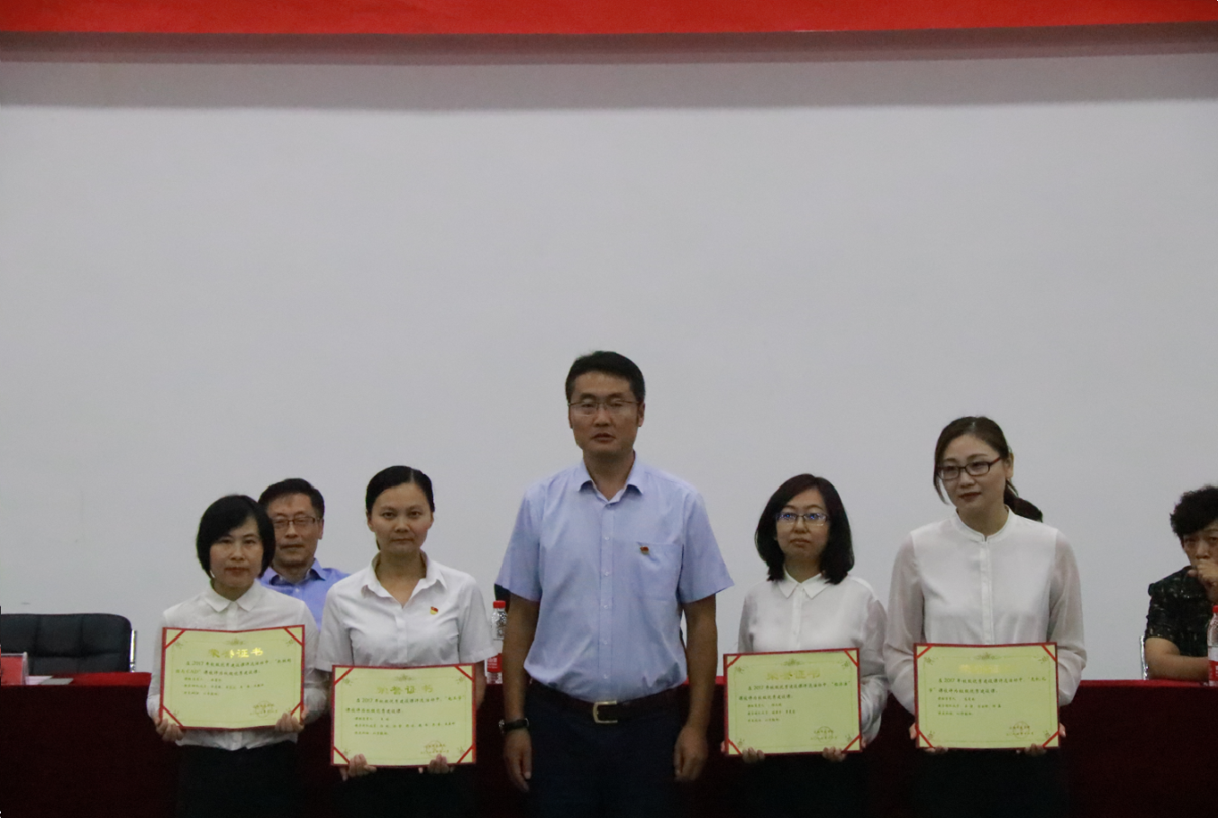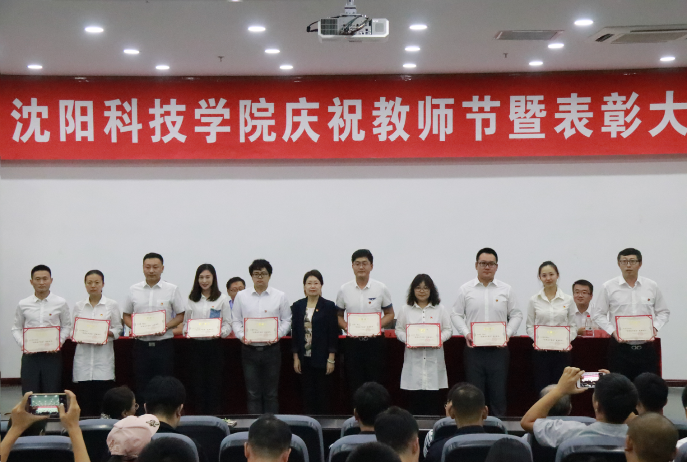 下午1:00,大会正式开始,全体与会同志肃然起立,共同高声奏唱庄严雄壮的《义勇军进行曲》。随后,党总支书记王一女宣读了获得学校2017年度“三育人”工作先进集体和个人、“优秀共产党员”的名单;副校长王喜魁宣读了我校获得2018年辽宁省普通高等教育本科教学成果奖、沈阳市自然科学学术成果奖、沈阳市科学学术年会优秀论文奖,2017年度沈阳市科技成果奖、沈阳市社会科学成果奖,辽宁省第二十一届教育教学信息化大赛和学校第一届教育教学成果奖,2017-2018学年创新创业竞赛“突出贡献指导教师”、“优秀指导教师”,2018年度优秀教案评选,2017年度校级优秀建设课评选的名单;校长助理、学生处处长高洪震宣读了学校2018年辅导员素质能力大赛“优秀奖”、“寒冬送暖、情系万家”家访工作“先进集体”和“优秀个人”,2017年学生工作先进单位的名单。主席台上就座的各位学校领导依次为上前受奖的集体代表和教师个人颁发了荣誉证书,并合影留念。
