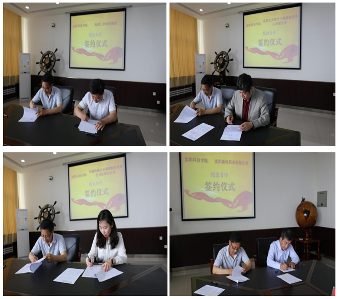 为了进一步强化应用型人才培养,深度探索校企合作、产教融合的应用型人才培养模式,努力提高人才培养质量, 6月11日,我校与临清三和纺织集团、沈阳化大高分子材料研发中心有限公司、华测检测认证集团股份有限公司沈阳分公司、沈阳新地药业有限公司等企业单位举行校企合作签约仪式。学校校长杨化仁、副校长王喜魁、校长助理张磊、教务处处长华玉瑶、化工系主任吴静等校系领导和各企业代表等出席签约仪式。