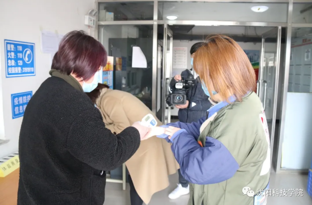 ↑↑↑检查“学生”校园卡、测温枪体温检测,进入教学楼。