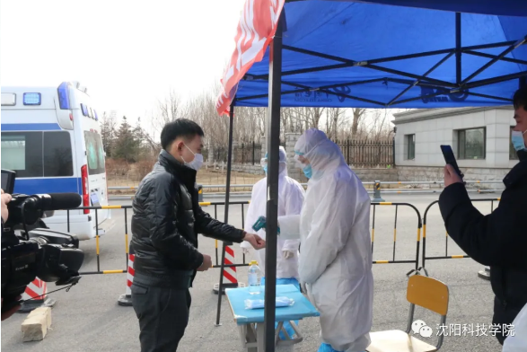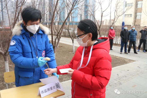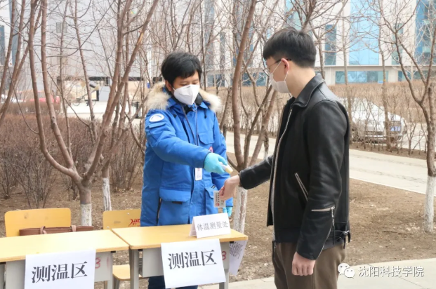 ↑↑↑工作人员负责布置警戒区域,并组织检查“学生”校园卡登记、测温枪体温检测。