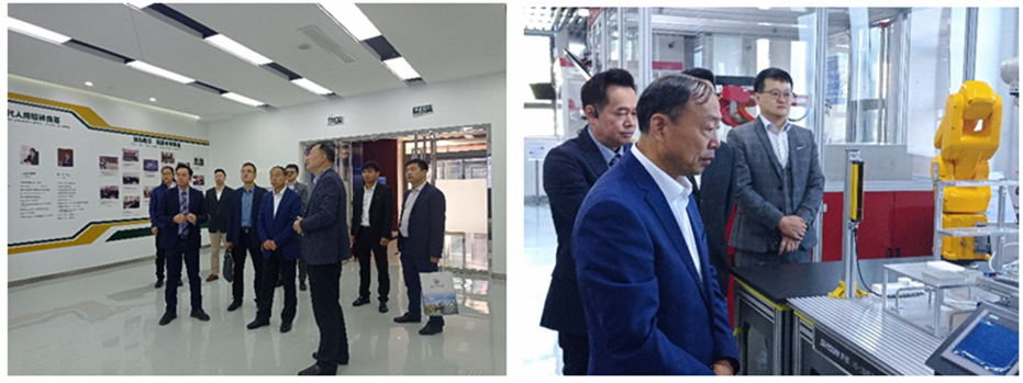 陈校长一行实地参观了新松工业机器人实训平台、5G+VR直播、大空间VR、数字党建、新松智慧工厂等基地,对新松公司的辉煌成长历程及广阔前景进行了深入了解。参观结束后,双方进行了友好座谈,双方就专业建设、人才培养、校企合作等方面进行了深入交流与探讨。陈校长表示,学校将陆续从机器人课程、1+X证书、教师交流培训、校外实习以及校内实训五个领域与新松教育科技进行展开产教融合方面的深度合作,并希望双方充分发挥各自在教育与产业中的优势,共同培育高质量、高水平的应用型人才。范总介绍了新松在教育领域的深耕业务和战略布局,提出双方合作建设方案,并表示愿以新松多年的项目经验以及在教育领域的开拓,为学校建设与发展贡献力量,实现互惠共赢。
