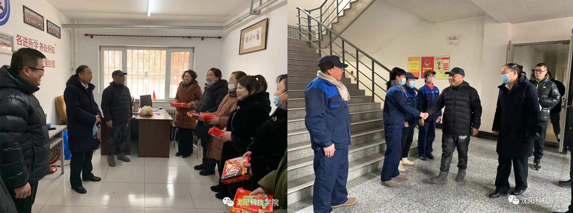 校领导一行走访了学校南北校区值班岗,教学楼、后勤电工维修班、宿舍管理科、国际交流中心等值班岗位。“大家新年好!坚守岗位辛苦了!”“学校的平安稳定离不开大家的辛勤付出!”每到一处,校领导与在岗值班人员亲切交谈,询问了春节期间疫情防控、后勤保障和校园安全等工作情况,并对大家舍小家、为大家,坚守岗位、辛勤付出,表示衷心感谢和崇高的敬意。同时,叮嘱大家要做好个人防护,确保自身和家庭安全。