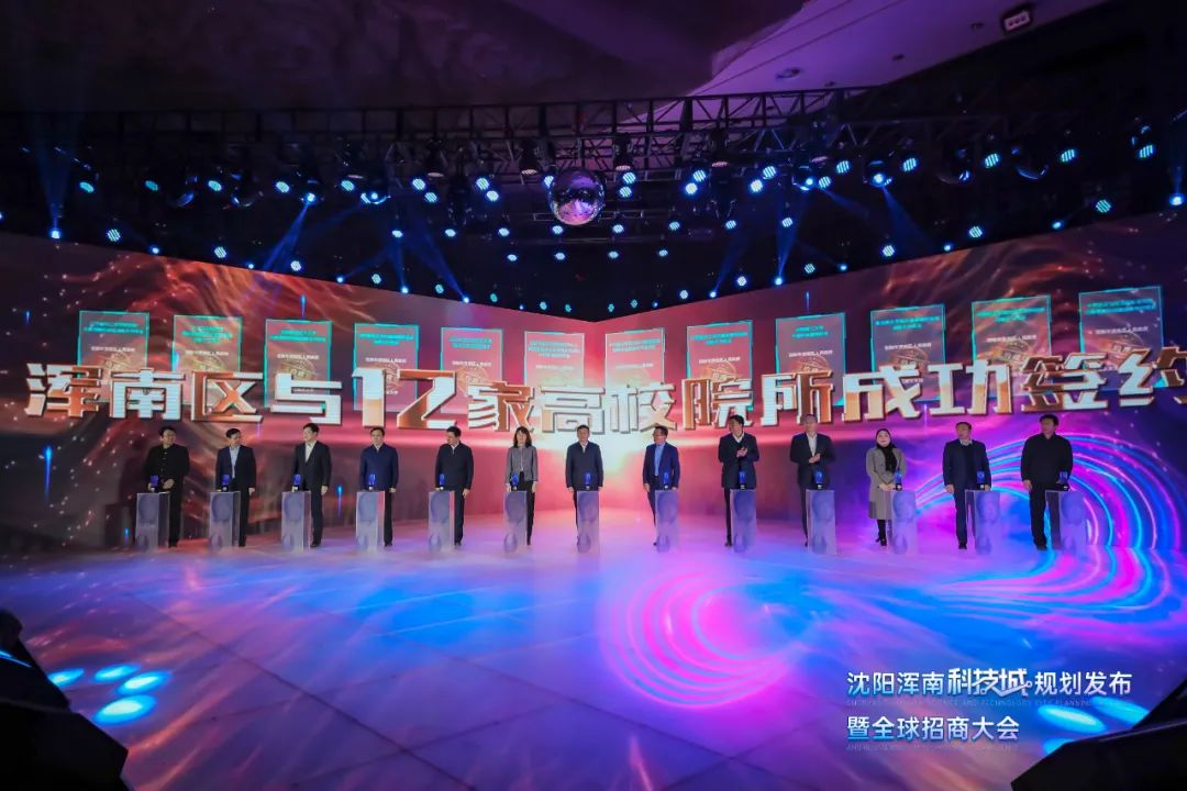 2月27日,沈阳浑南科技城规划发布暨全球招商大会在沈阳富力万达文华酒店举行。作为12所签约的高校院所之一,我校校长陈保东、校长助理张磊受邀参会。