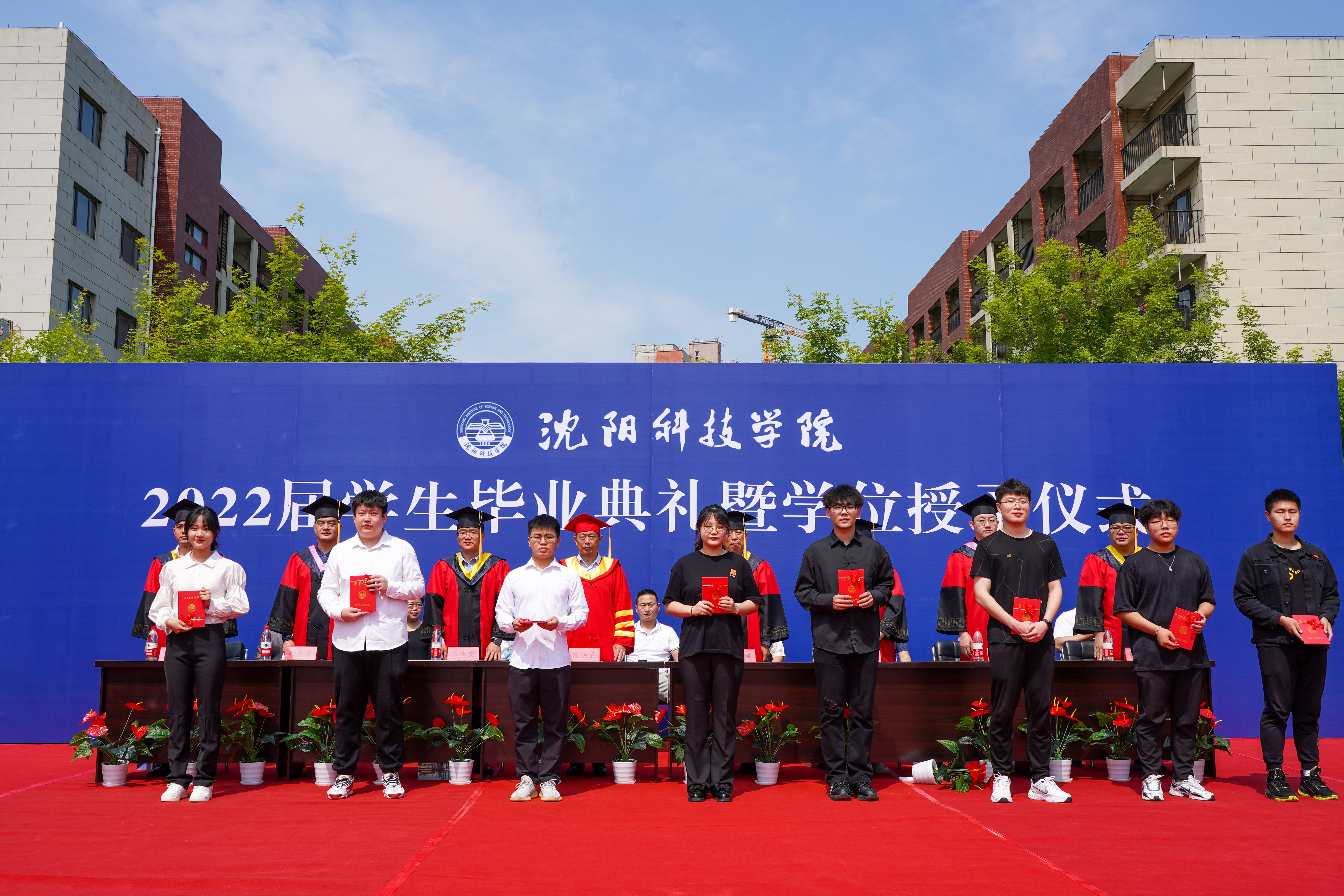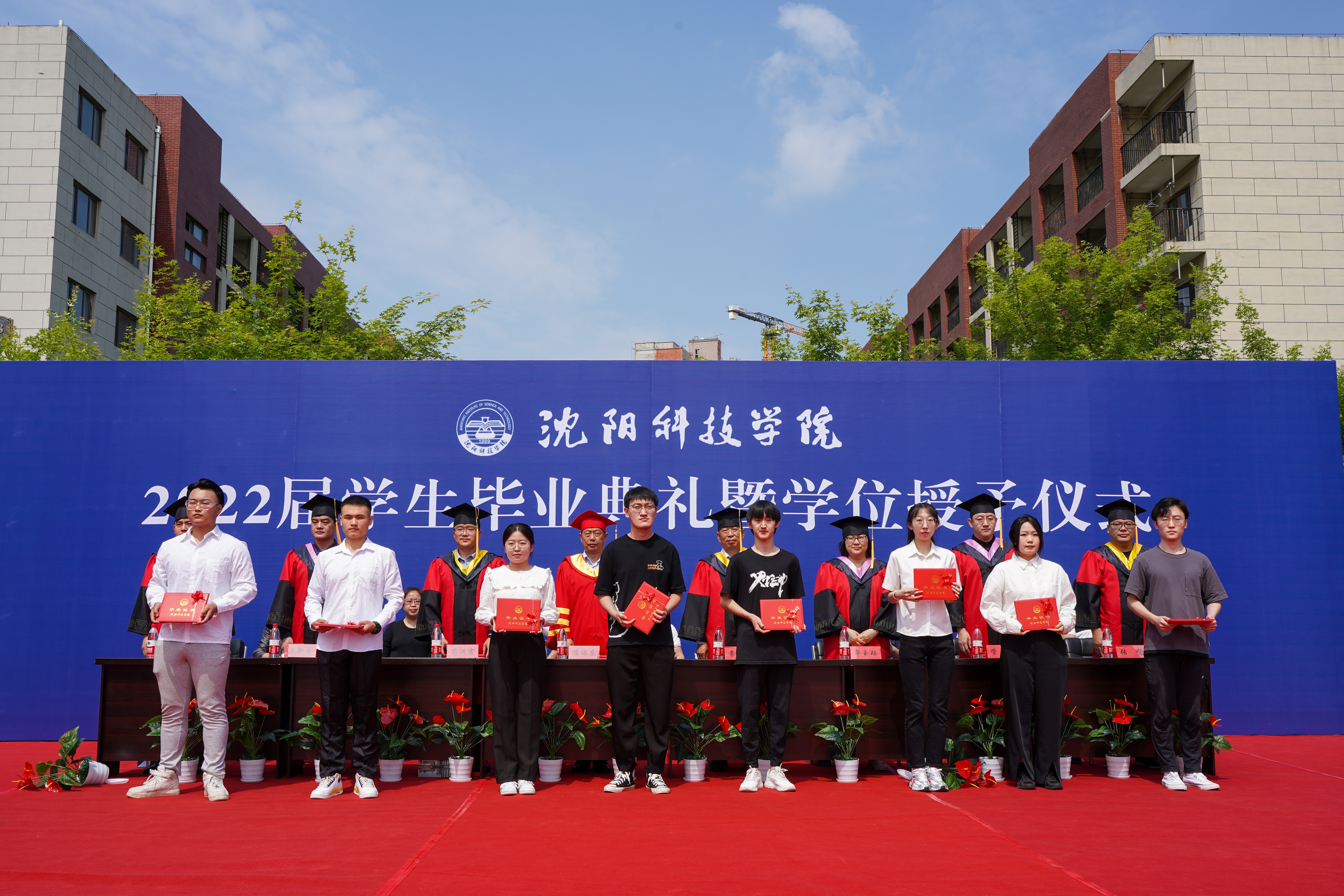 毕业典礼在庄严的国歌声中拉开帷幕。副校长袁德成宣读了2022届学生毕业名单、获得学位名单、校优秀毕业设计(论文)学生名单;副校长高洪震宣读了2022届辽宁省优秀毕业生名单、校优秀毕业生名单。校领导为获奖者颁发证书,并为获得学位的毕业生代表正冠拨穗。