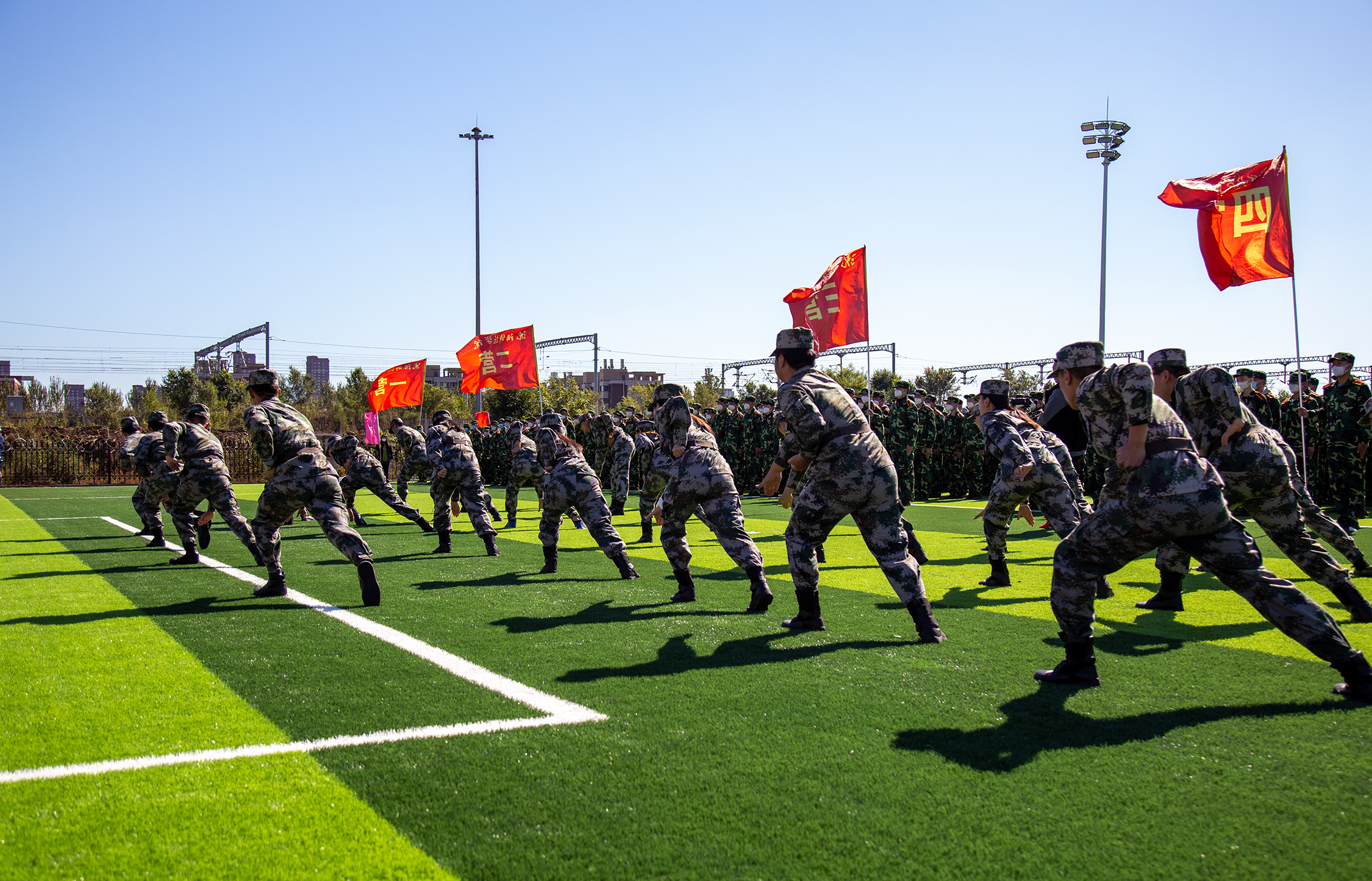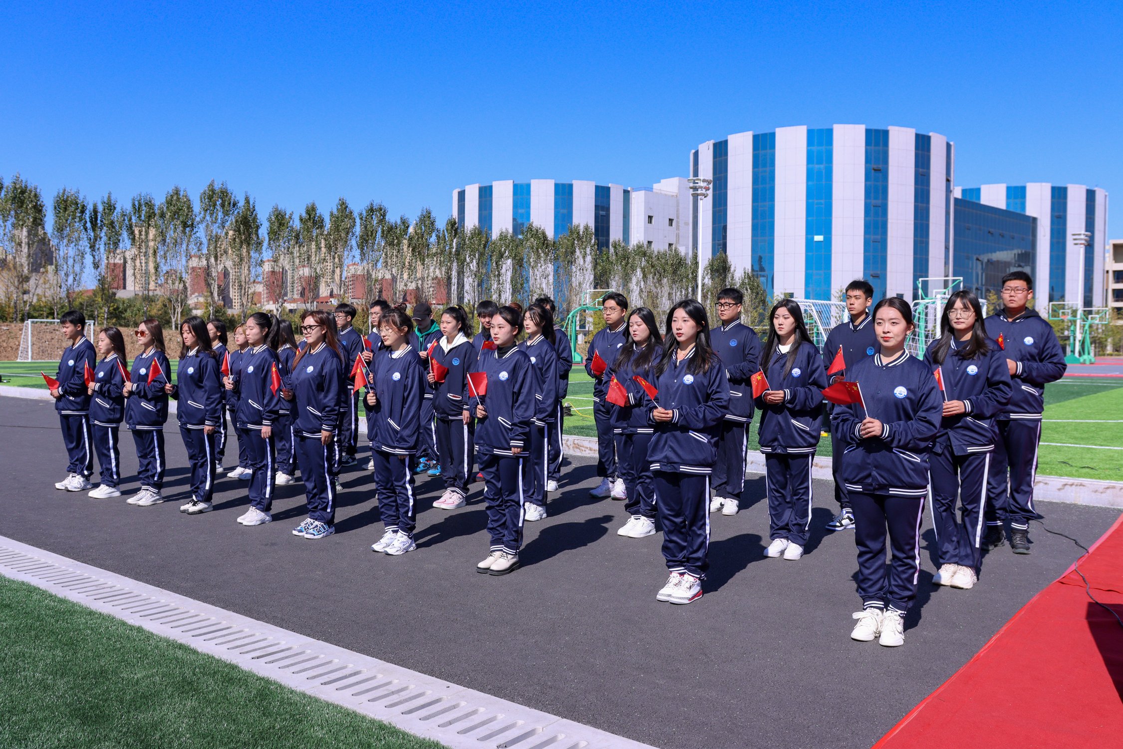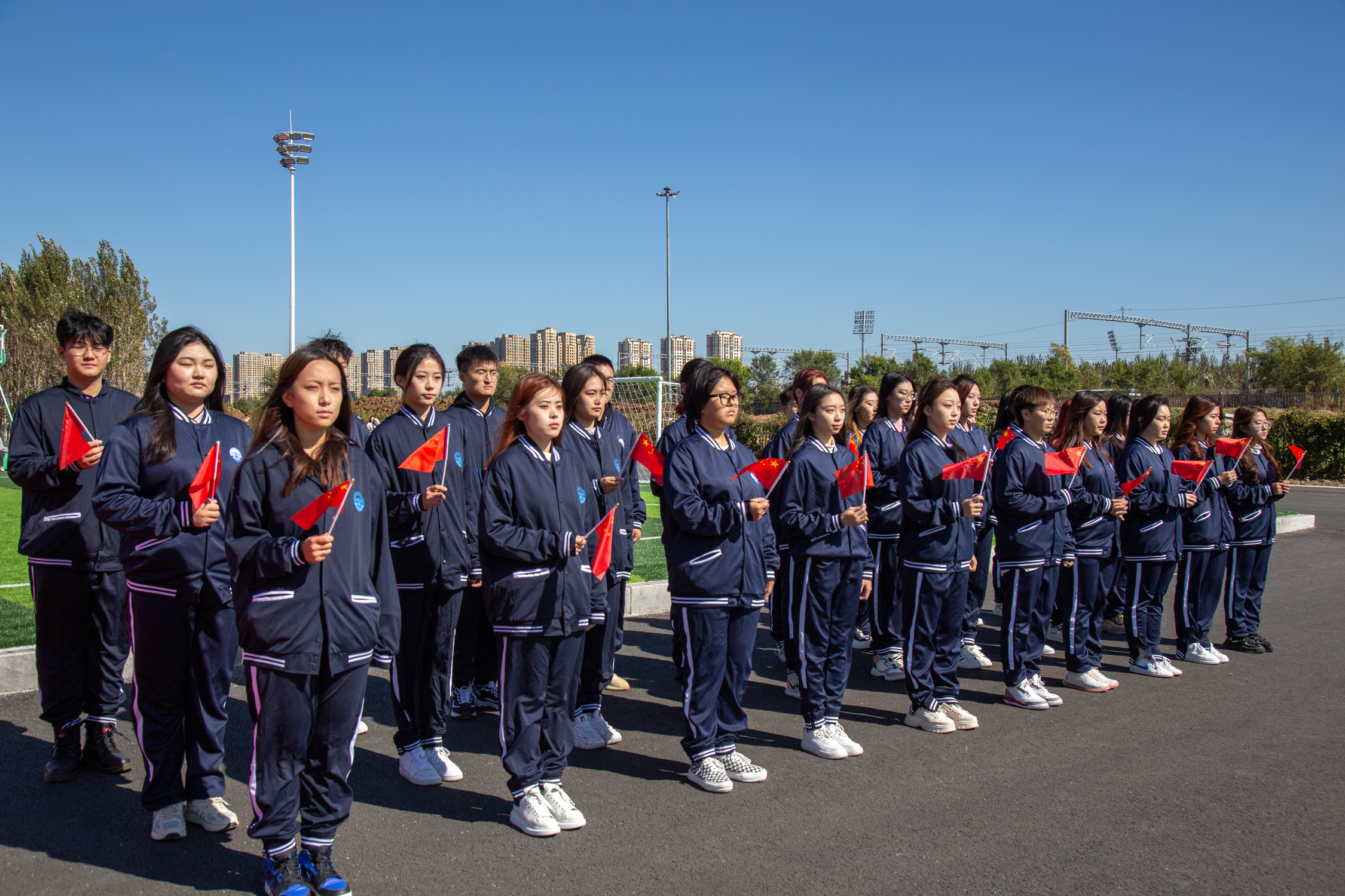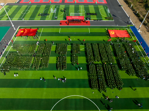 来自五湖四海的1600余名新生,迎着清晨的阳光,相聚在操场中央,