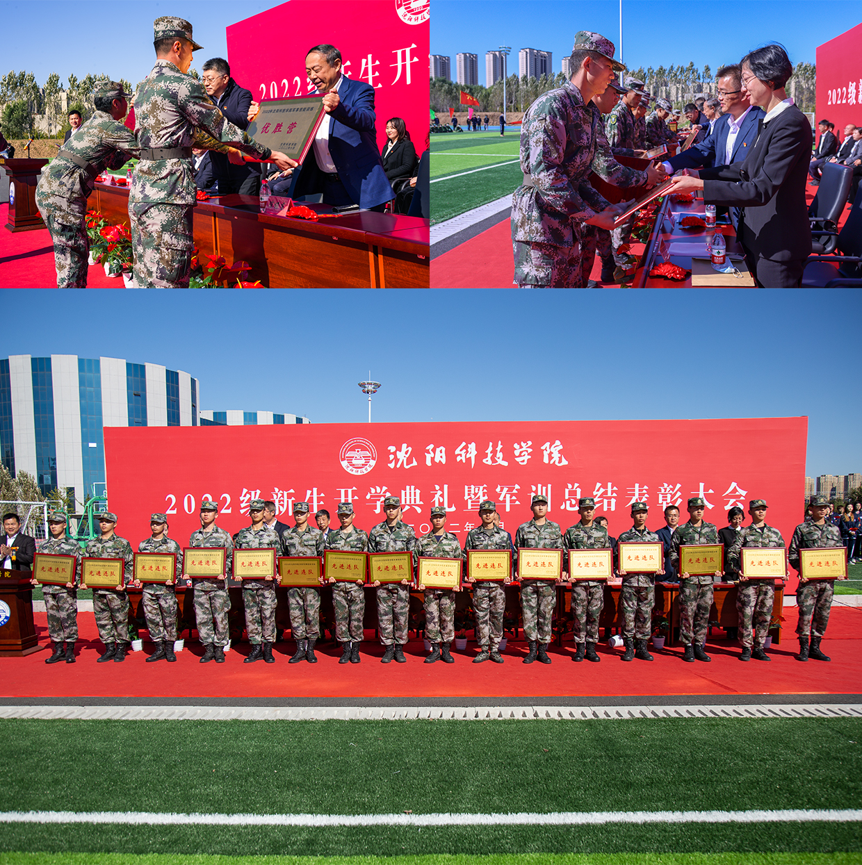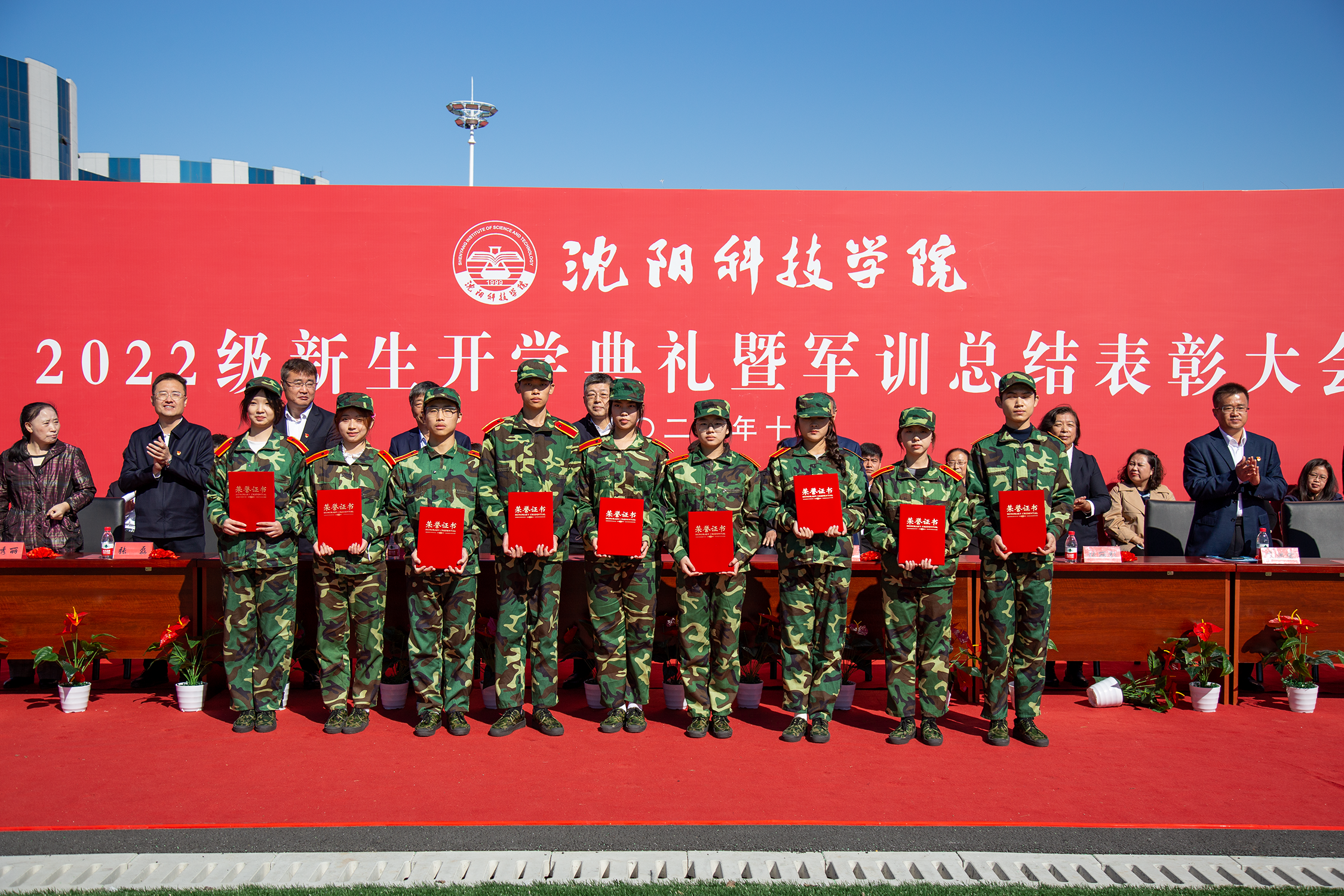 2022级新生开学典礼暨军训总结表彰大会在校歌《大路阳光》中落下帷幕。