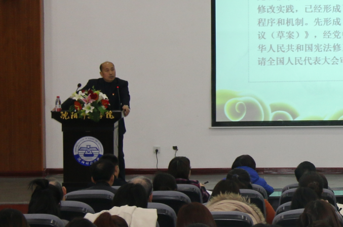 会上,我校基础部社科教研室赵家和老师作为主讲人,以“学习宪法、遵守宪法、拥护宪法”为主题,围绕“宪法修改的基本考虑”、“修改原则”、“关于中央修宪建议和宪法修正案(草案)的形成过程”、“关于宪法修正案(草案)的具体内容”等四个方面深入浅出、通俗易懂、旁征博引地向全体与会师生进行了主题宣讲。
