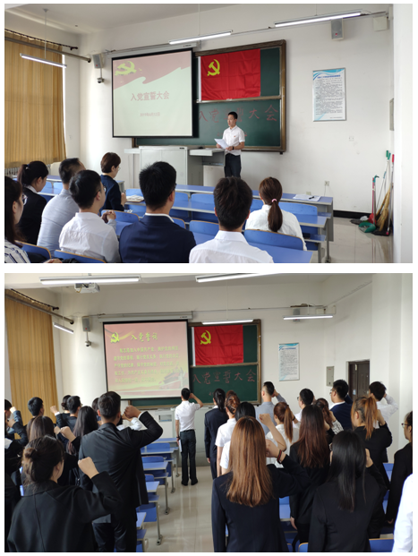 6月12日10:30,我校党总支隆重举行预备党员入党宣誓大会。党总支书记王一女出席大会并作重要讲话,本次宣誓大会由党群工作部部长肖士中主持。