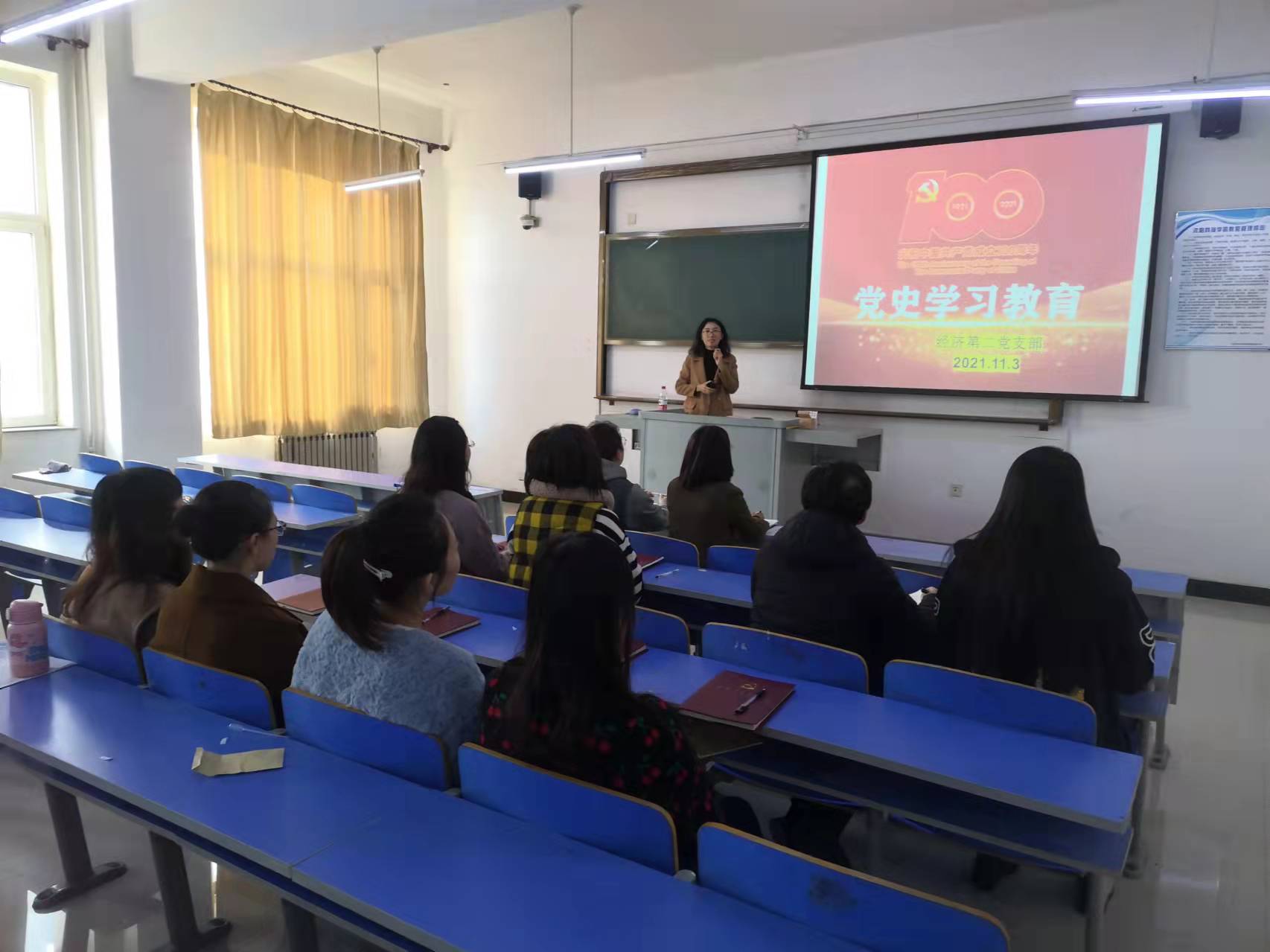 11月3日下午,经济系党总支第二支部在203教室组织召开了党史学习教育学习研讨会,会议由支部书记孙佟主持,经济系教师党员参加了会议。会上,支部书记强调了党史学习教育的重要性及其意义,教师党员纷纷分享了心得并表态发言,大家一致认为,党史学习教育是教学工作的重要环节之一,将其有效融入教育教学过程,充分发挥教师党员的学科专业优势和示范引领作用。(根据经济系党总支第二支部供稿修改 供稿员:孙佟)
