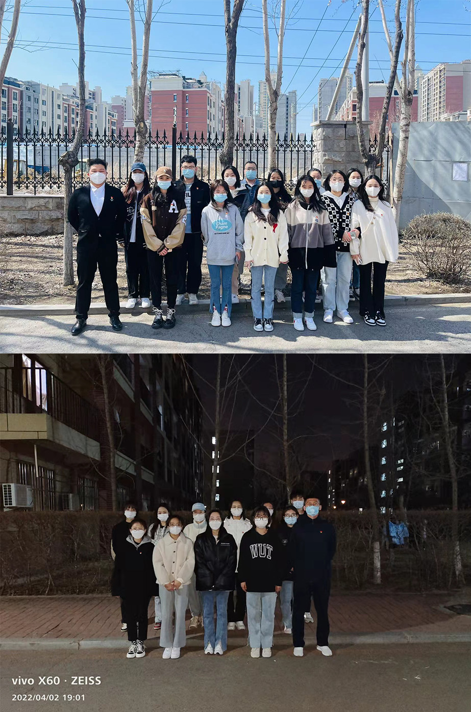 学生工作社区临时党支部组织120多名学生党员突击队、志愿服务队,奔赴学生工作社区辖内的各个小区卡点,协助社区开展疫情防控相关工作,守住责任区,站好先锋岗,在校园一线筑起“铁壁铜墙”。他们担任“巡视员”,24小时校内巡逻,卡位值守,严把校园入口关;他们化身“保卫员”,在楼宇按时消杀,在食堂维持秩序,守好校园安全线;他们做好“宣传员”,积极宣讲科学防疫知识,树立正确导向,筑牢红色防护墙。