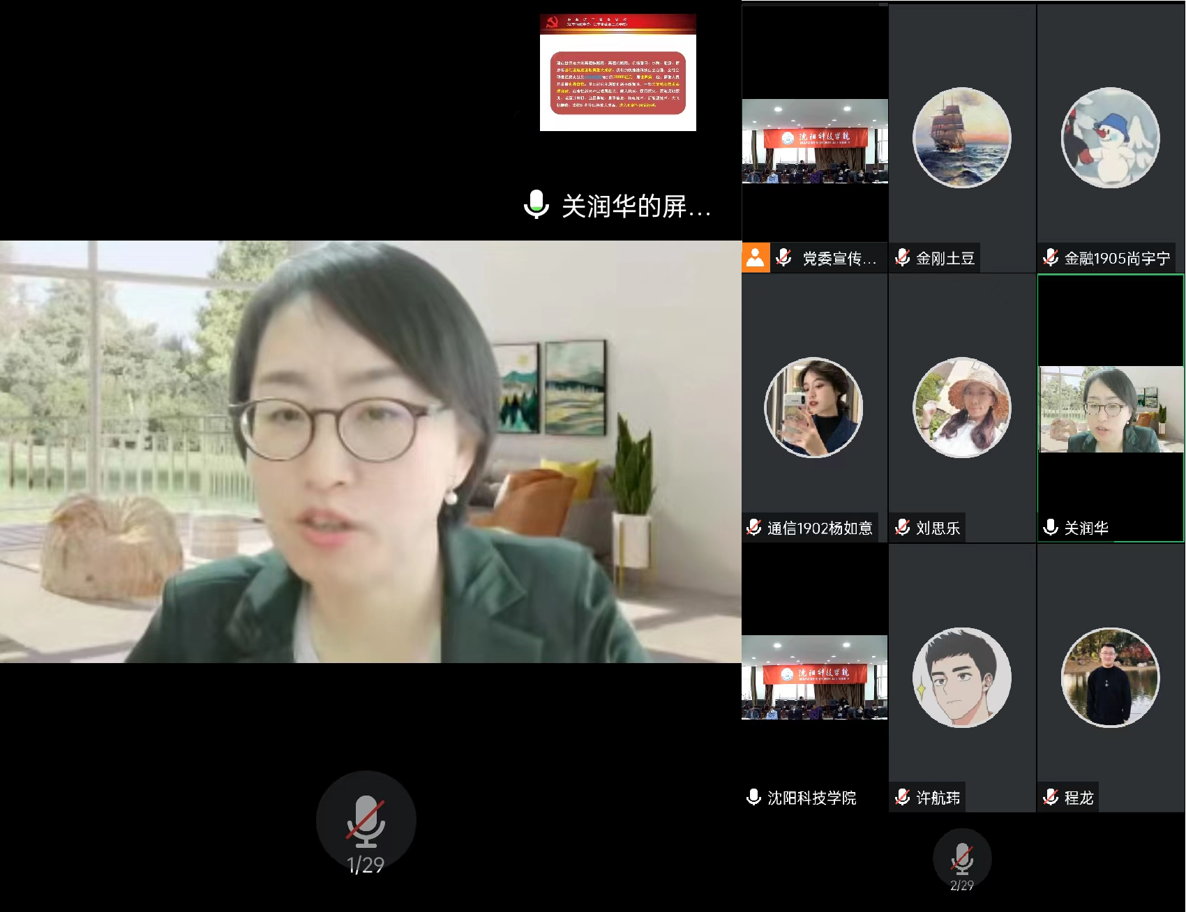 为深入贯彻中央和省委关于做好学习宣传贯彻党的二十大精神的决策部署,根据《中共辽宁省委教育工委 辽宁省教育厅关于全省教育系统深入学习宣传贯彻党的二十大精神的通知》,按照校内印发的《关于学习宣传贯彻党的二十大精神的实施方案》和召开的动员部署大会相关安排,11月28日下午,学校举办了学习宣传贯彻党的二十大精神专题辅导报告会。辽宁省委党校党史教研部关润华教授应邀作线上专题辅导报告。