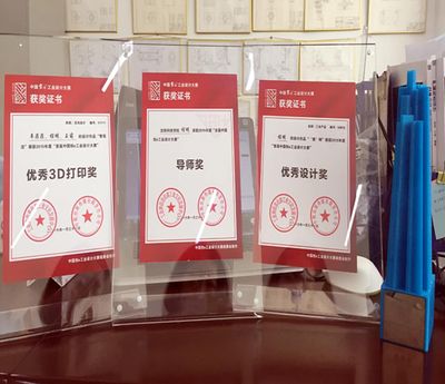 (学生优秀3D打印奖,优秀工业产品奖证书)
