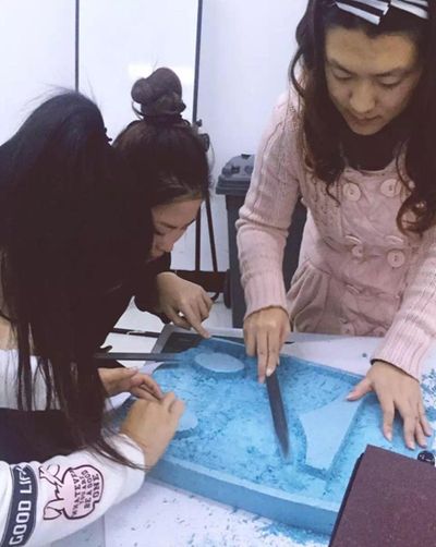 (学生以小组形式不断尝试模型制作,实验过程)