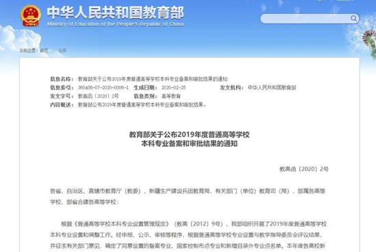 近日,教育部公布了2019年度普通高等学校本科专业备案和审批结果,我校申报的互联网金融和智能制造工程两个本科专业全部获批。至此,我校本科专业总数达到31个,覆盖五个学科门类。