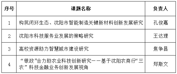 我校喜获四项2021年度沈阳市科技创新智库决策咨询课题立项