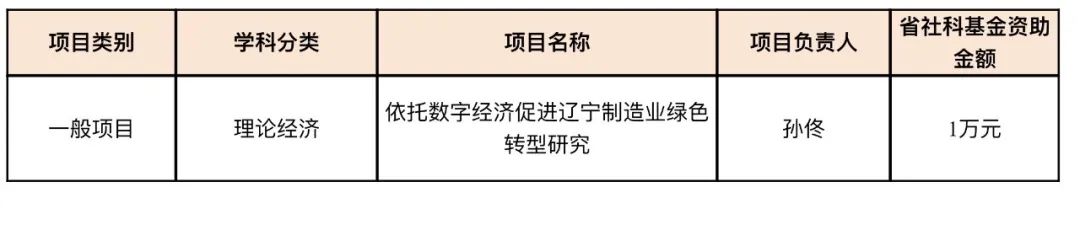 近日,辽宁省社会科学规划基金办公室公布了2022年度辽宁省社会科学规划基金项目立项结果,我校经济系教师孙佟所在创新团队申报的《依托数字经济促进辽宁制造业绿色转型研究》获批立项。该项目以数字经济的角度,为辽宁制造业绿色转型和区域绿色发展明晰方向、提供依据,推动制造业绿色转型与发展,有一定的理论意义和参考价值。