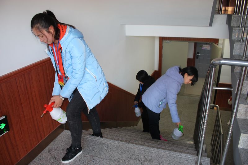 此次消毒活动得到了各系的积极配合,均能按照标准完成好消毒任务,本次消毒主要针对寝室内的卫生死角进行清理。消毒前,各系辅导员老师走访寝室叮嘱学生整理好内务卫生及个人物品,在消毒过程中,提醒同学们要开窗通风,保持宿舍内空气流通;同时,自律学生干部也组成消毒小组对寝室楼走廊、楼梯、卫生间、洗漱间、垃圾箱周围进行了一次全面彻底的消毒。消毒工作结束后,宿舍管理科老师深入学生寝室进行卫生检查工作,对寝室卫生及安全隐患进行排查,确保此次卫生清扫消毒工作的有效性。