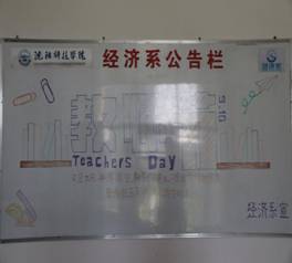环境与生物工程系团委组织学生精心布置教师办公室,在黑板上写下了满满的节日祝福,精心制作水粉画来表达对老师们的敬佩。