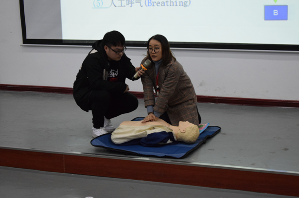 11月27日,来自沈阳市红十字会高校联盟的王喆老师作为主讲人,向广大志愿者们介绍了红十字会的起源发展、组织机构、标志及人道、博爱、奉献的红十字精神,使大家对红十字会有了初步了解。随后,王老师结合理论知识和实际救护技巧对生活中遇到的突发状况急救和心肺复苏等内容作了详细讲解。为更好地教会大家应对突发事件现场处理,王老师还现场示范了如何进行心肺复苏急救技能,并着重强调了现场“黄金4分钟”原则。与会各位同学认真学习每个步骤,在老师的指导下现场进行急救演练,进一步提高了自救互救技能和应急事件处理能力。