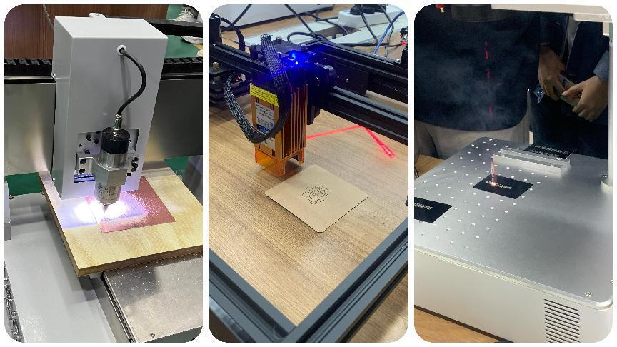 培训内容包括:3D扫描仪、3D打印机、芯片雕刻机、激光打标机、激光雕刻机的使用操作、注意事项及维护等内容。在芯片雕刻机和激光打标机培训中,王阳工程师首先讲解了机器的使用方法,利用详细的实例,讲述了如何利用雕刻软件进行操作,如何选材,比例调节等。把画好的图形传输进去,调节雕刻机参数,使雕刻机正常运行,雕刻出电脑软件画出的图案。