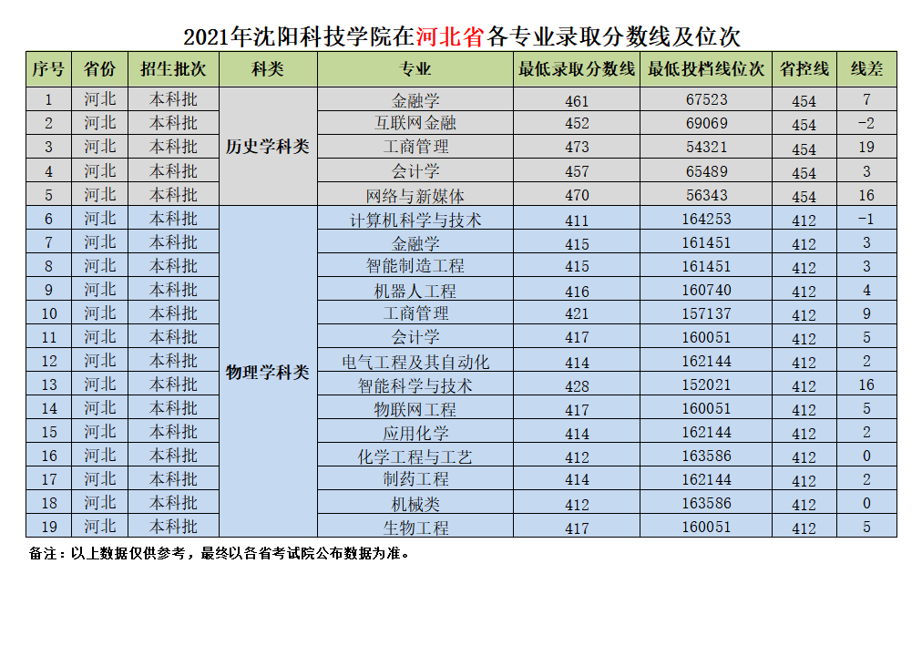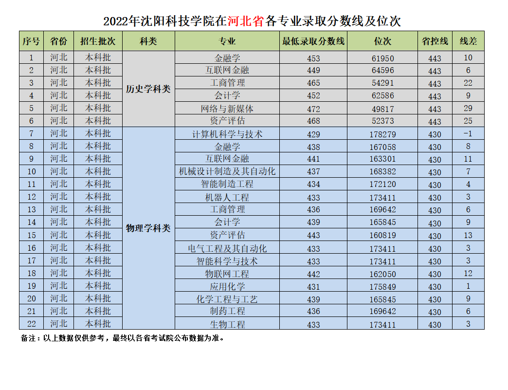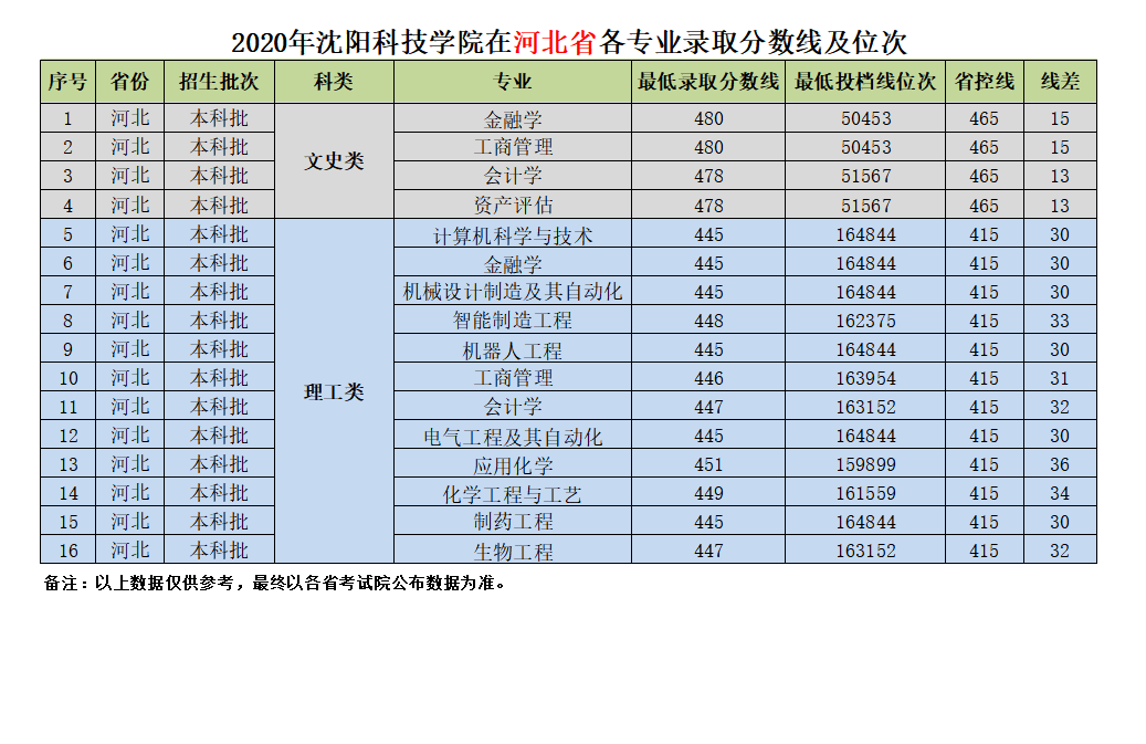 我校在河北省近三年各专业录取分数线及位次