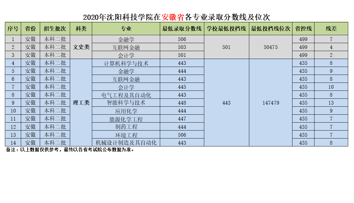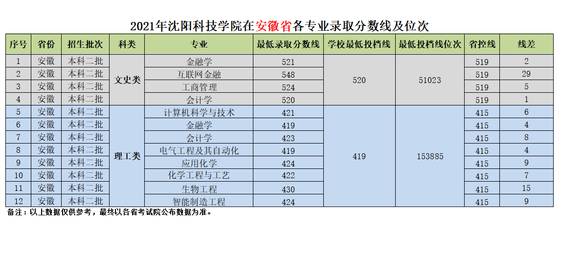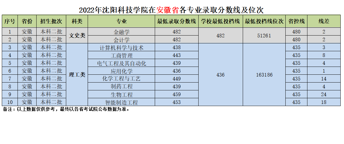 我校在安徽省近三年各专业录取分数线及位次
