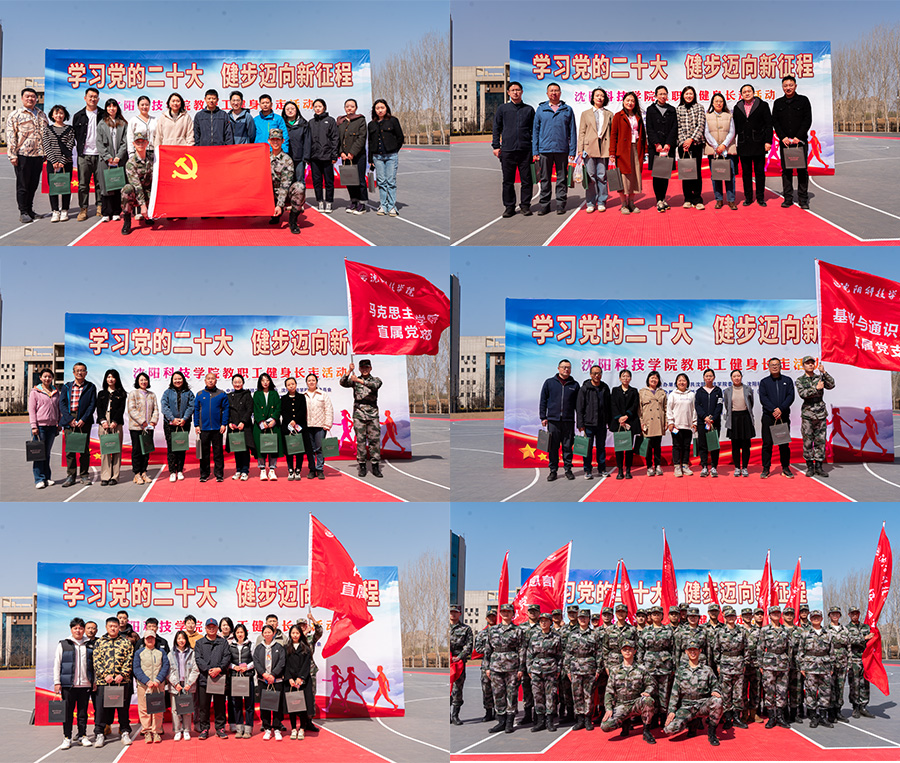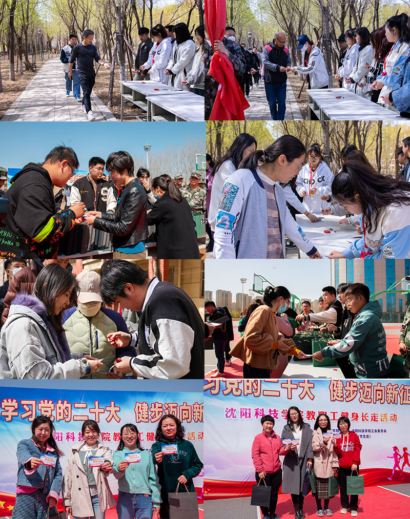 本次健身长走活动预设了“雄关漫道真如铁,而今迈步从头越”“红军不怕远征难,万水千山只等闲”“千淘万漉虽辛苦,吹尽狂沙始到金”“红船精神代代传、理想信念耀中华”“穿越草地迎胜利、党旗所指勇向前”“心向祖国铭党恩、情系沈科向未来”共计六个校园打卡点。全体教师以红旗广场为起点,经乐知路到学校正门完成第一个打卡点,再依次经由明德路、文星路、兑泽路、丽正路、新南湖等点位,最终抵达大学生运动广场,凭借完成全部点位打卡标识在终点领取活动纪念品并合影。