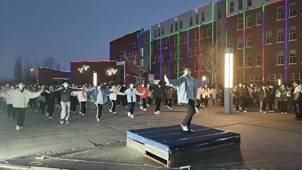 盘锦职业技术学院推出校园广场舞活动,伴随着跳动的旋律,同学们整齐划一的舞步成了校园中一道亮丽的风景线。在这里他们可以尽情的挥洒汗水、尽情的舞动青春、尽情的享受青春的浪漫。
