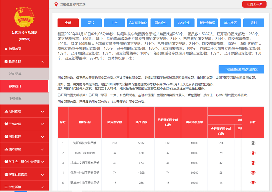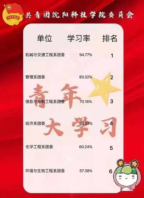 扎实开展组织化学习教育活动。以全校215个团支部为基本单位,开展“党的青年运动史”“建团100周年大会精神”“新时代的伟大成就”“党的二十大精神”等专题理论学习会,参与“青年大学习”网上主题团课,引领沈科青年全面系统学习领会习近平总书记关于青年工作重要论述,推动党的二十大精神深入人心。