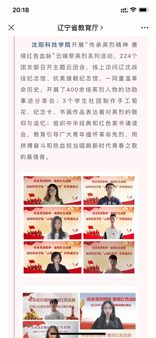 不断完善“网上共青团”建设。依托“沈科之声”广播电台和“共青团开云官网首页(中国)集团委员会”微信公众号发布稿件200余篇,10余篇稿件被辽宁省教育厅、辽宁高校网络思政中心、辽宁学联转发报道,引导我校团员青年正确面对新冠肺炎,做好自我保护,不散谣言,弘扬主旋律,传递正能量。