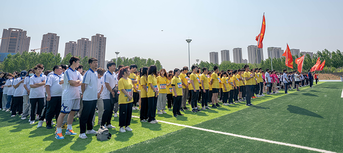 为全面贯彻落实习近平总书记关于体育教育的重要论述和全国教育大会精神,构建德智体美劳全面培养的育人体系,进一步丰富学生校园体育文化活动,让广大学生在体育锻炼中享受乐趣、增强体质、健全人格、锤炼意志,5月10日,我校2023年大学生体育文化节开幕式暨春季校园马拉松赛在南校区正式拉开帷幕。校领导耿乃国、孙玉红、袁德成、王鸿鹏、高洪震、郭秀丽、张磊出席活动。学校各职能部门负责人,各系主任、党总支书记、团委书记、教师代表、学生代表和参赛运动员近2000余人参加活动。开幕式由校团委书记宋和发主持。
