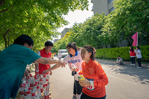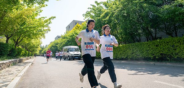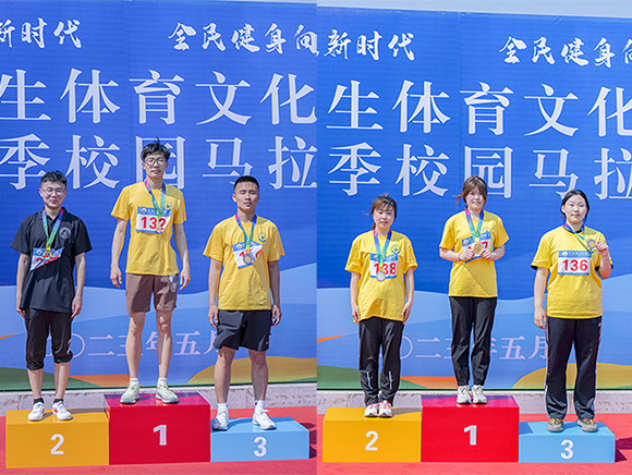 此次校园马拉松赛分为男子组和女子组,赛程约2.5公里。为保证参赛选手得到足够的能量补充,赛道沿途设有志愿服务、医疗救助、饮水补给等站点。参赛者激烈角逐,纷纷冲向终点,在领奖处有序领取奖牌,大家情绪高昂、气氛热烈。