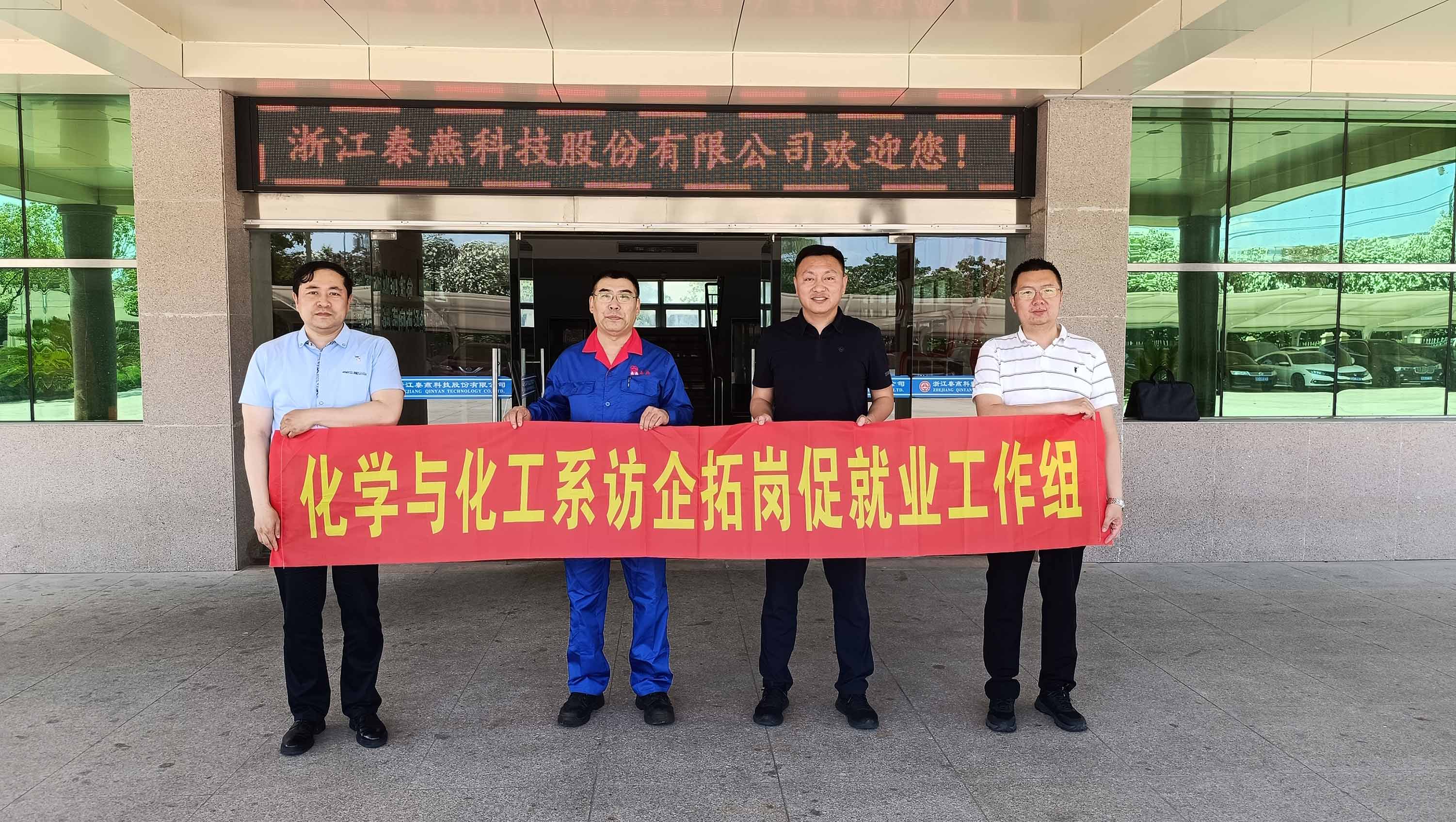 为贯彻落实党中央、国务院关于高校毕业生就业工作的决策部署,积极响应教育部、省教育厅“高校书记校长访企拓岗促就业专项行动”要求,为毕业生开拓更多就业创业岗位和机会,6月7日至10日,化学与化工系党总支书记、副主任都颖老师、化学工程与工艺教研室主任单译老师、2019级辅导员常舒扬老师成立访企拓岗促就业工作组,前往浙江省绍兴市、嵊州市、上虞市等地,到访浙江湃肽生物股份有限公司、浙江康牧药业有限公司、浙江秦燕科技股份有限公司、浙江上虞利星化工有限公司进行实地考察交流。