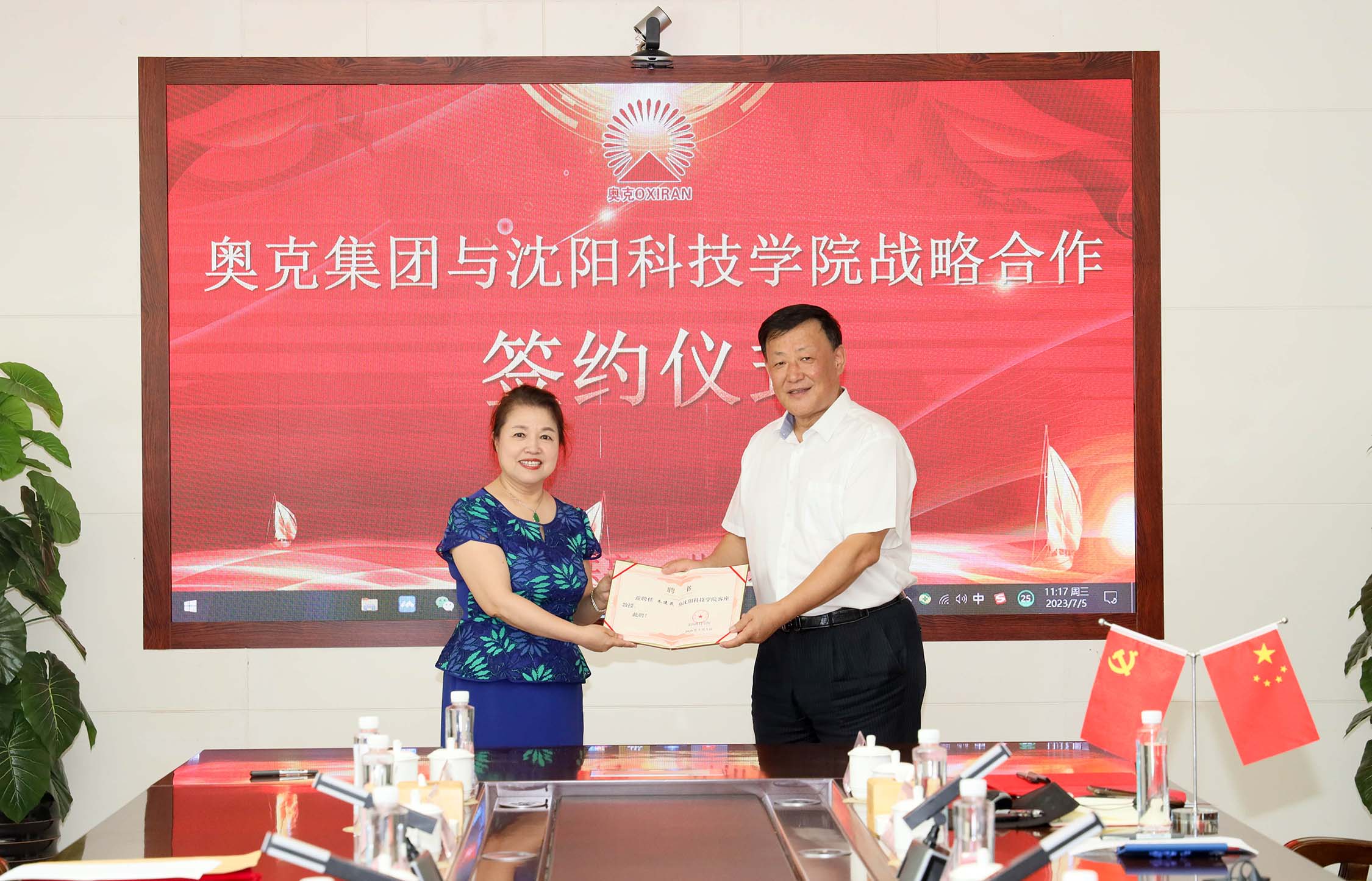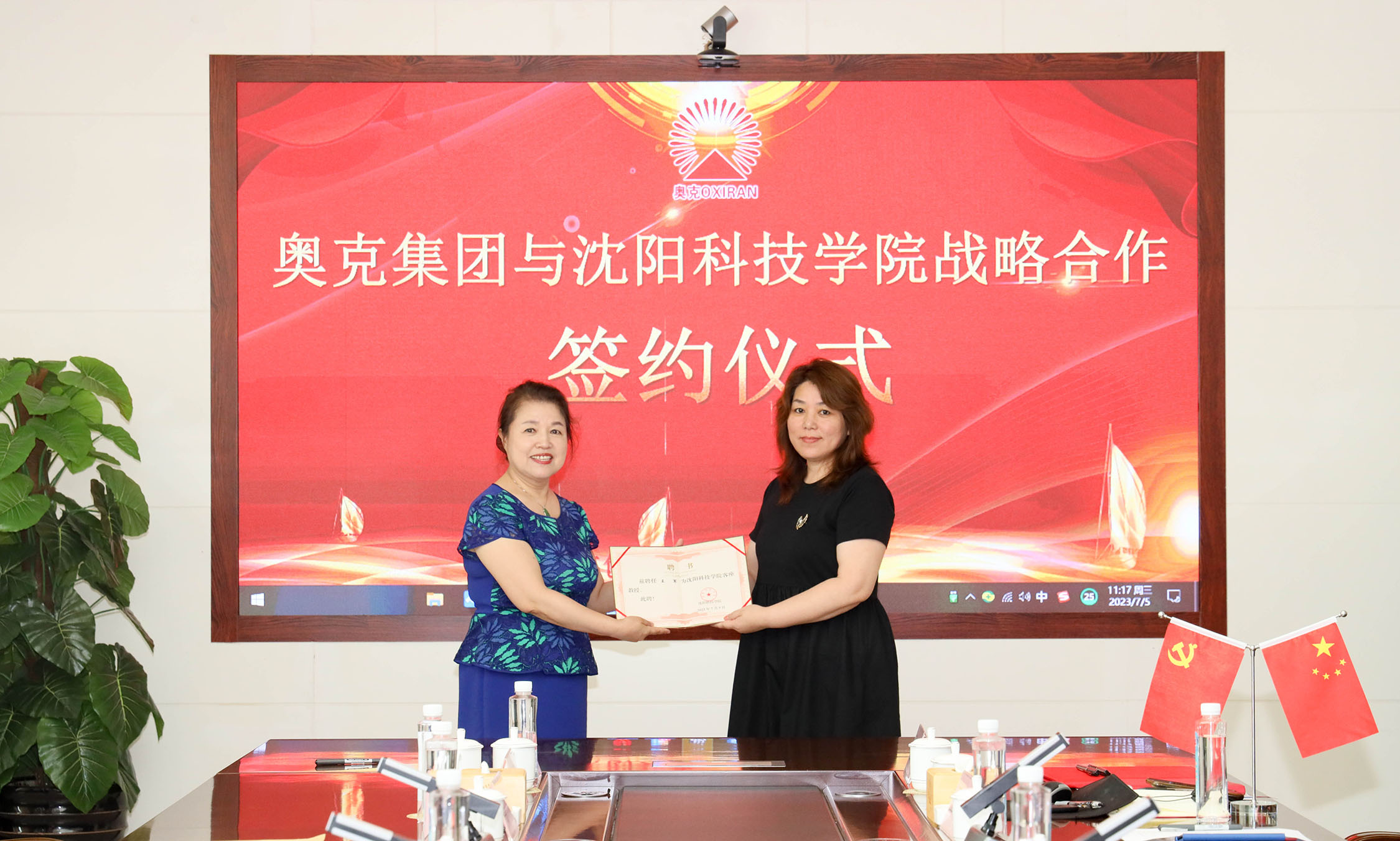 朱建民董事长就奥克集团发展情况进行了回顾,讲述了企业的历程渊源以及特有的“教师情怀、学院文化”理念。他指出,奥克集团十分重视与高校的合作,愿以此次合作为契机,瞄准“产教融合”主攻方向,充分发挥企业自身的特长优势,有效建立“产学训研创用”相结合的校企合作机制,进而实现校企双方在人才培养、双师队伍、技术开发、改造创新、社会培训、技能竞赛等方面取得新进展、新突破,一体化推动校企实现全方位、多层面的实质性融合,为辽宁全面振兴新突破做出新的贡献。同时,朱董事长还介绍了奥克集团致力于关爱残疾大学生、引导残疾大学生到企就业的教育责任和社会担当。