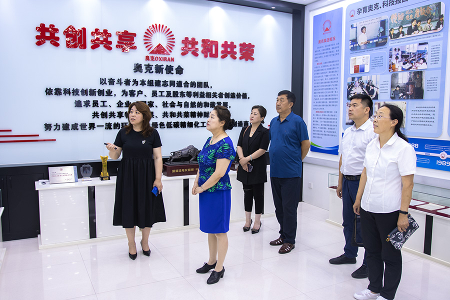 孙校长一行抵达后,在集团副总裁王军的陪同引导下,对奥克展馆进行了参观,直观地了解到奥克集团“共创共享、共和共荣”的企业核心文化、三十余年的创业历程和取得的成果。