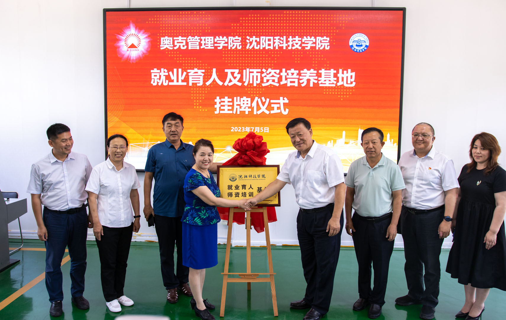 最后,校企双方一同在奥克管理学院实训基地举行了“就业育人及师资培养基地”揭牌仪式,并合影留念。