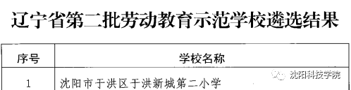 8月25日,辽宁省教育厅公布了辽宁省首批劳动教育实验区和辽宁省第二批劳动教育示范学校的遴选结果,我校成功获批“辽宁省第二批劳动教育示范学校”,此次全省共遴选100所学校。其中,中小学校共75所,高校和职业学院共25所。