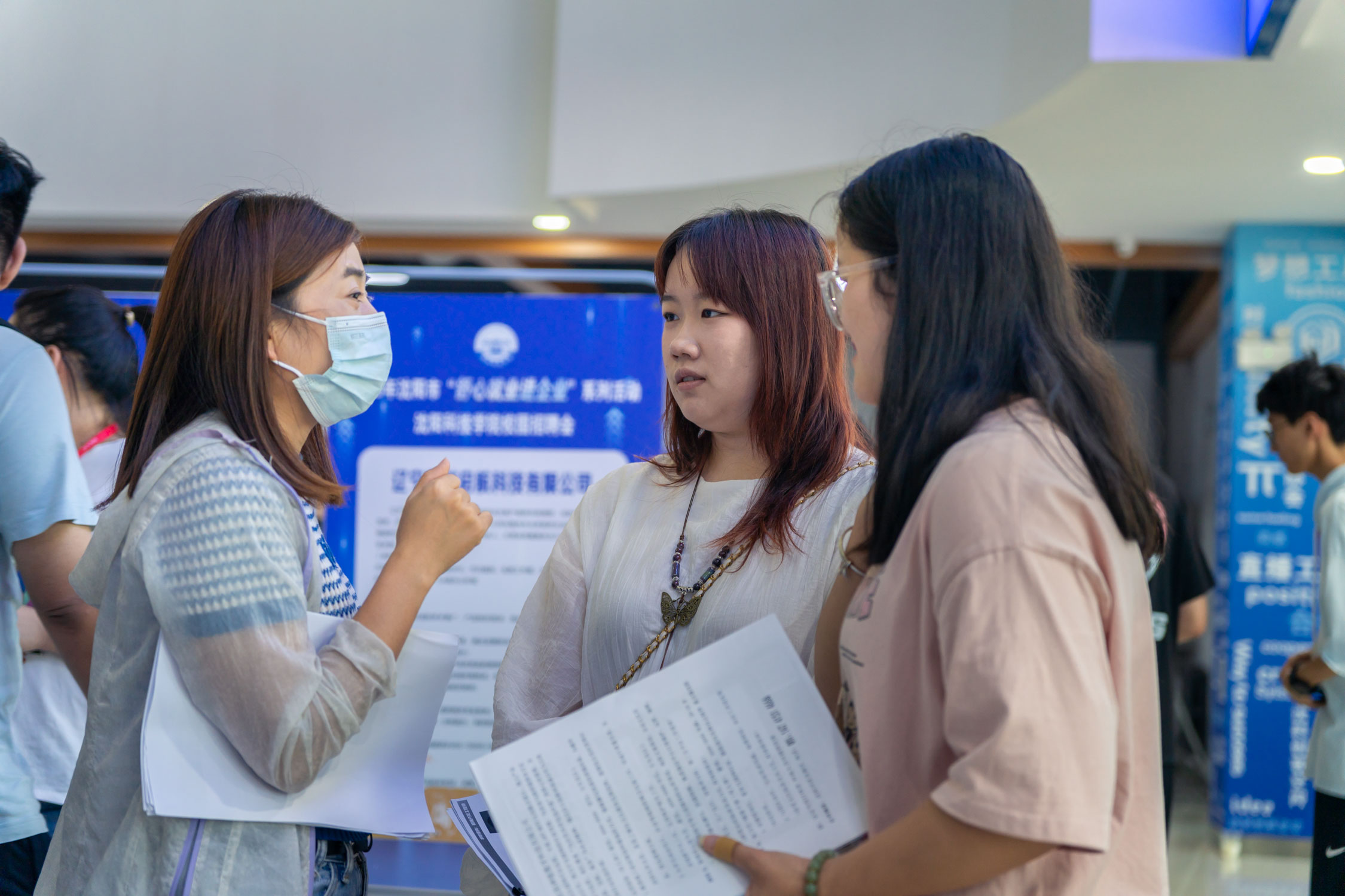招聘会期间,辽宁省大学生就业创业中心融媒体就业服务工作室负责人洪澎、中国沈阳人才市场工会主席程显兵、浑南区人力资源和社会保障事务服务中心主任赵斌、法库县人力资源和社会保障事务服务中心副主任赵峰与学校党委书记耿乃国、副校长王鸿鹏等领导到现场指导工作。党委书记耿乃国深入现场,与用人单位交流,了解用人单位对毕业生的需求和意见反馈,欢迎用人单位通过多种途径到校招聘,并表示学校将通过访企拓岗和校企合作等方式,进一步加强与用人单位的联系。