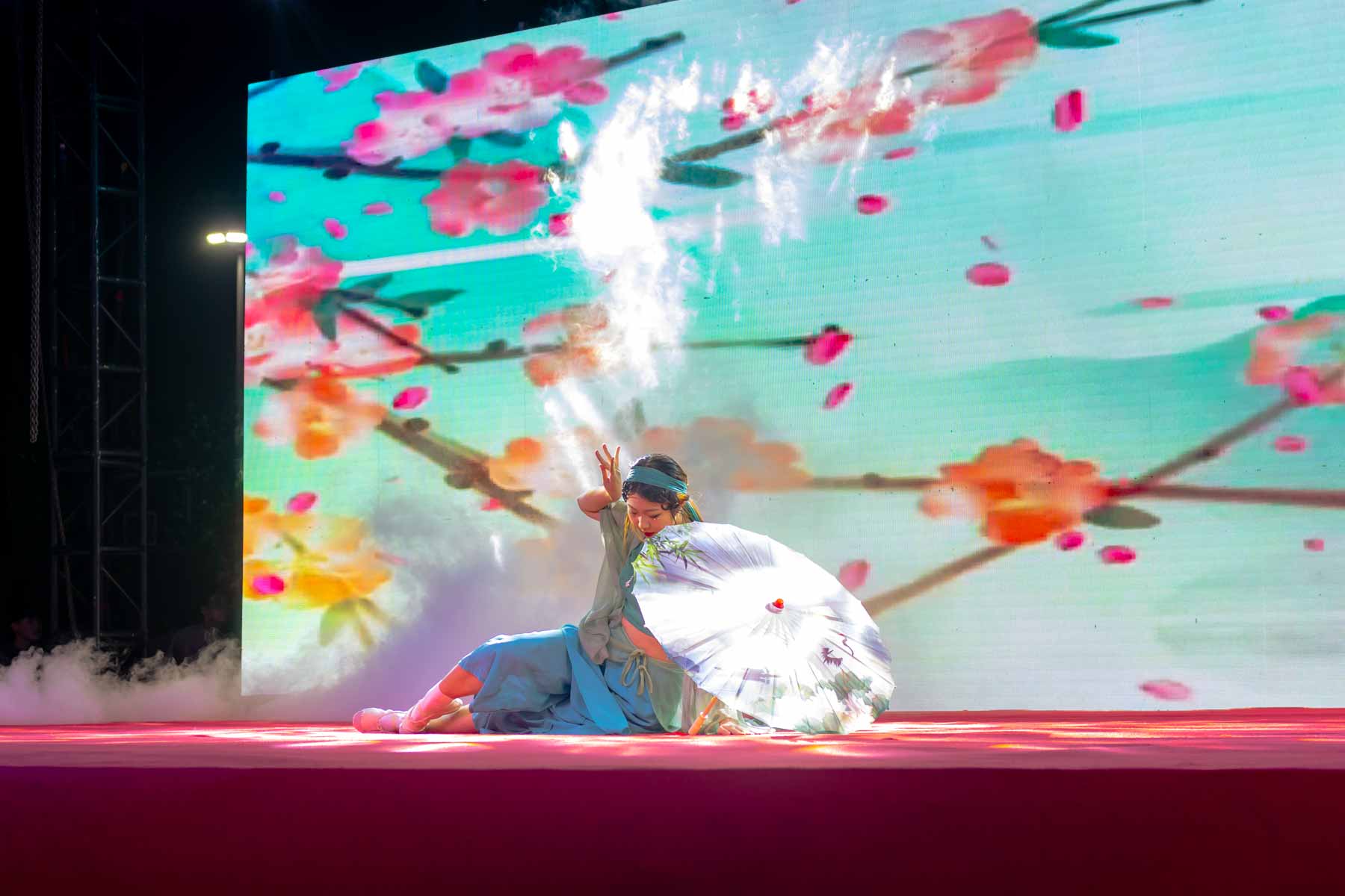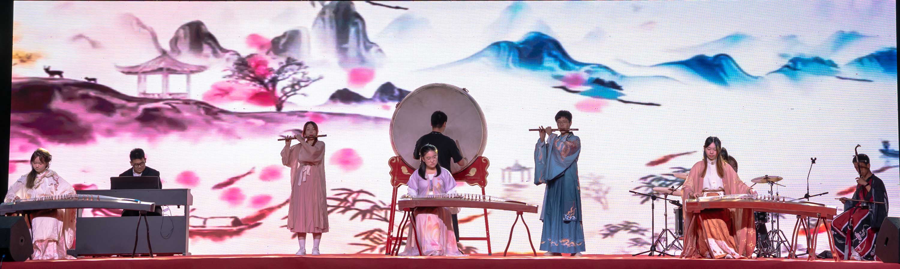 灯光璀璨,人潮欢腾。开场歌舞《欢聚一堂》将现场热情点燃,晚会正式拉开帷幕。民乐合奏《双面燕洵》,或低回婉转,或雄浑激昂。青春洋溢,活力四射,歌曲《海芋恋》,再将现场热情再次带到高潮。舞蹈《舞动青春》充满朝气闪耀登场,尽显青春本色。歌曲《消愁》、《飞云之下》、《字字句句》悠扬的曲调激起了我们对探索青春的热忱,一起奔赴星辰大海。