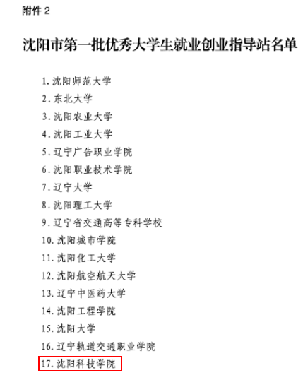 近日,沈阳市教育局及沈阳市人力资源和社会保障局联合公布了沈阳市大学生就业创业指导站名单及沈阳市第一批优秀大学生就业创业指导站名单。我校成功入批“沈阳市大学生就业创业指导站”并荣批“沈阳市第一批优秀大学生就业创业指导站”。此次全市共认定38所高校指导站为沈阳市大学生就业创业指导站,20所高校指导站为沈阳市第一批优秀大学生就业创业指导站。