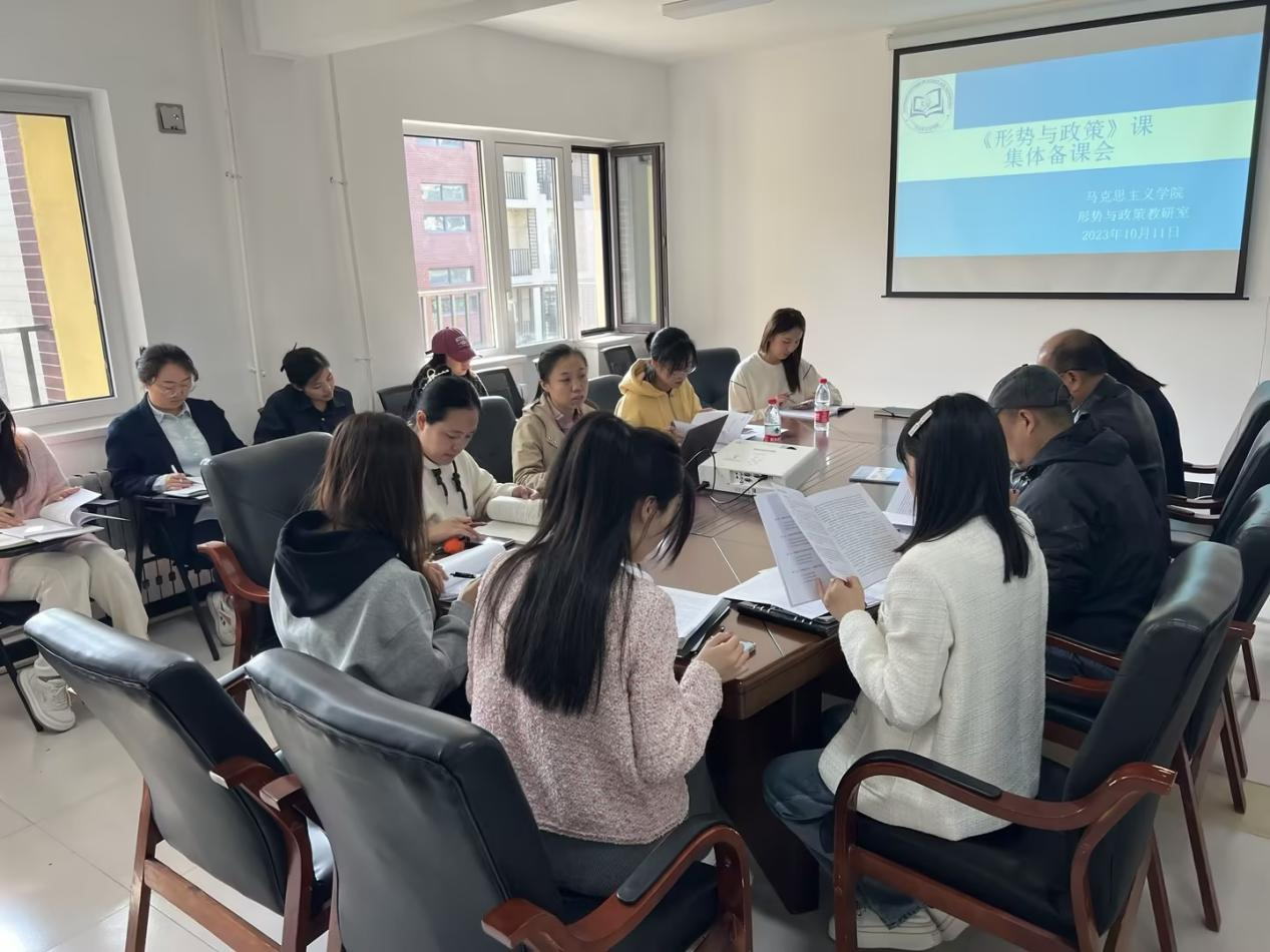 “形势与政策”课是对学生进行形势与政策教育的主渠道和主阵地,在大学生思想政治教育中担负着重要使命。为确保我校本学期“形势与政策”课教学和教研活动的有序开展,马克思主义学院于近日组织召开了“形势与政策”课集体备课会,全体任课教师参会,会议由教研室主任李淑娟主持。