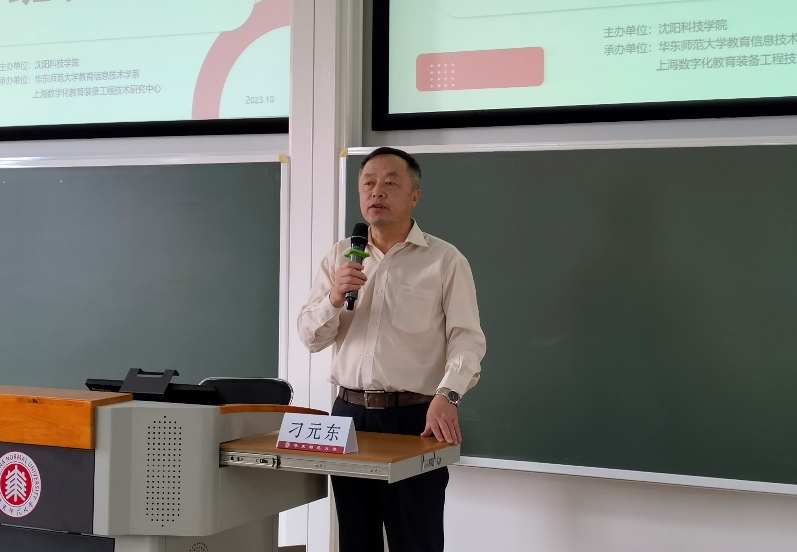 10月28日上午,开云官网首页(中国)集团新教师教学能力提升专题培训班(第二期)在华东师范大学顺利开班。开班仪式由华东师范大学刘永老师主持,华东师范大学教育信息技术学系暨上海数字化教育装备工程技术研究中心副主任薛耀锋,我校刁元东教授、刘淑霞教授、教师发展中心主任刘佳以及参加本次研修活动的全体新教师全员出席。