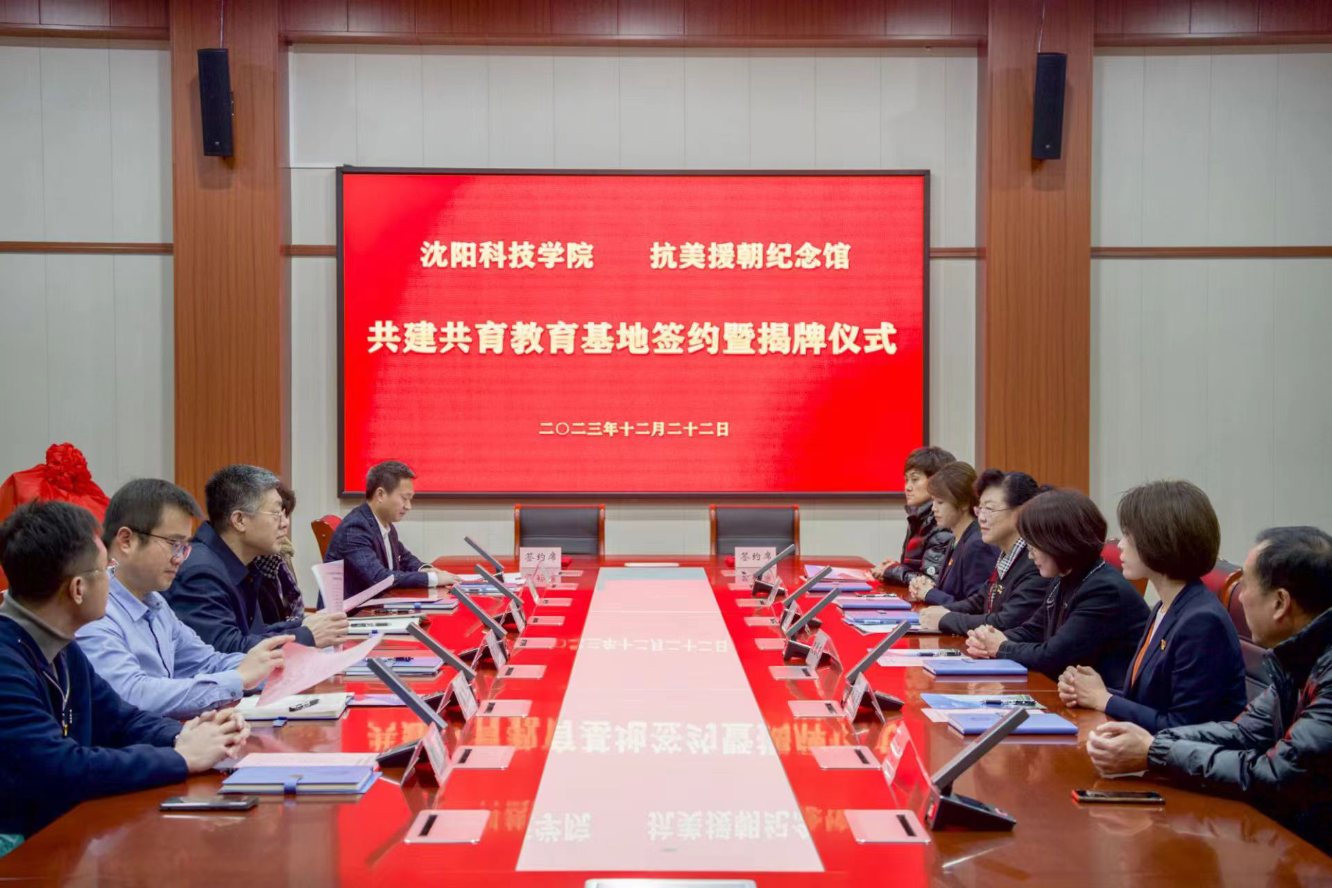 为深入开展学习贯彻习近平新时代中国特色社会主义思想主题教育,有力推进学校“红色育人工程”,12月22日,我校与抗美援朝纪念馆举行共建共育教育基地签约暨揭牌仪式。抗美援朝纪念馆党委书记、馆长刘静媛,党委副书记、纪委书记史春庆及相关部门负责人,学校党委书记耿乃国,副校长张丽影,党委副书记、副校长高洪震,正校级调研员郭秀丽,校长助理张磊,部分职能部门负责人出席仪式。仪式由学校纪委书记、党委组织部部长肖士中主持。